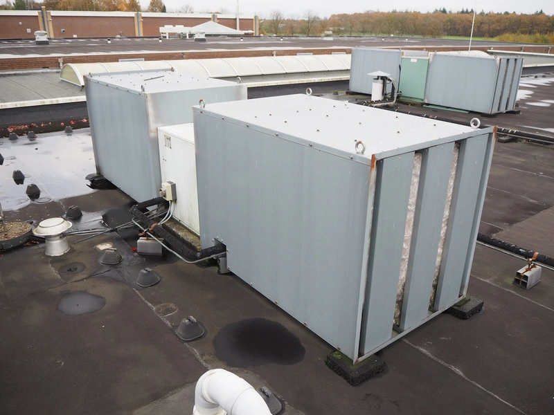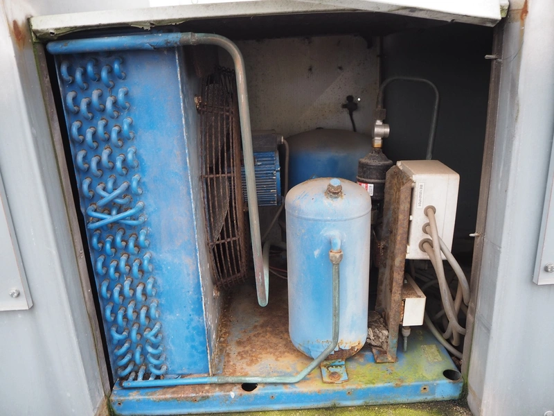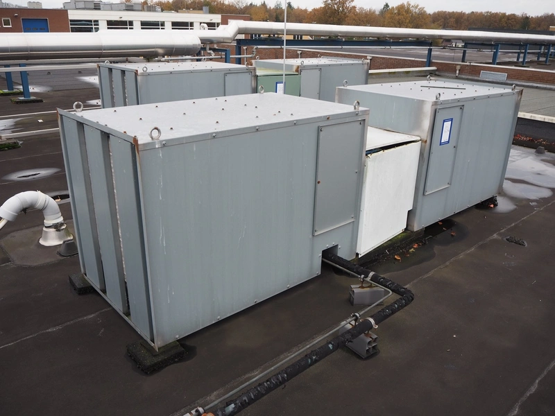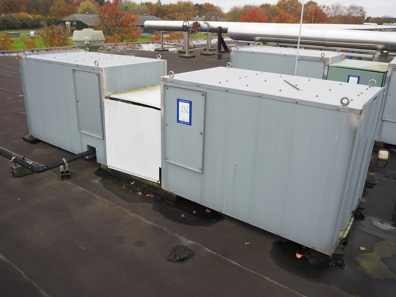Maneurop condensing unit, year of construction: 1994, refrigerant: R134A, dimensions: 3700 mm x 1000 mm x 1000 mm. Situated on the roof. Can be picked-up at a later date as soon as the building will be demolished next year, a date for this is yet unknown.