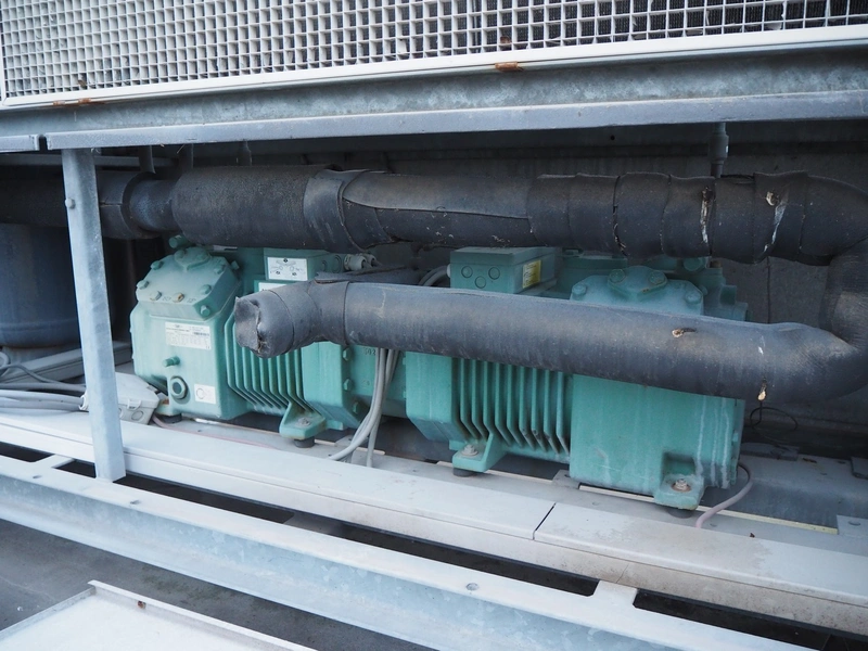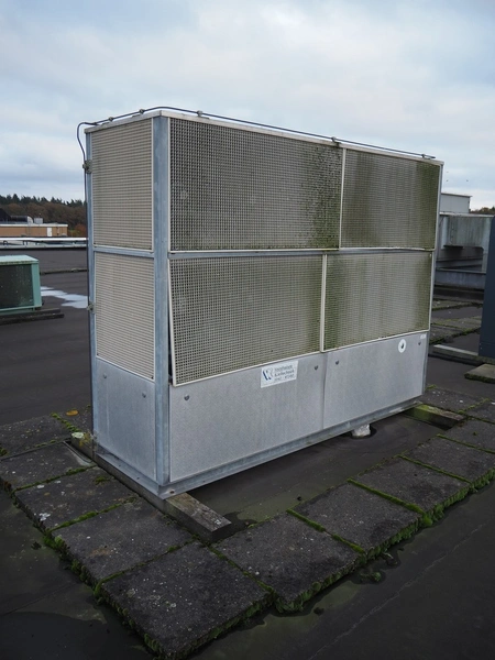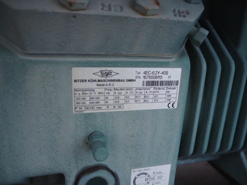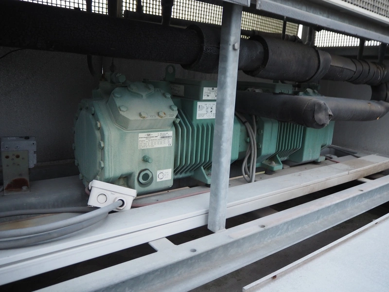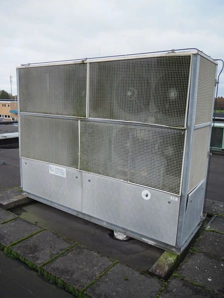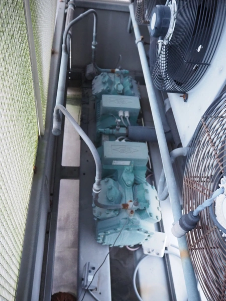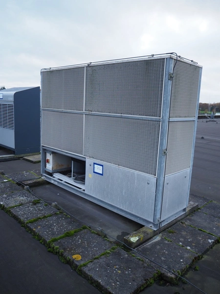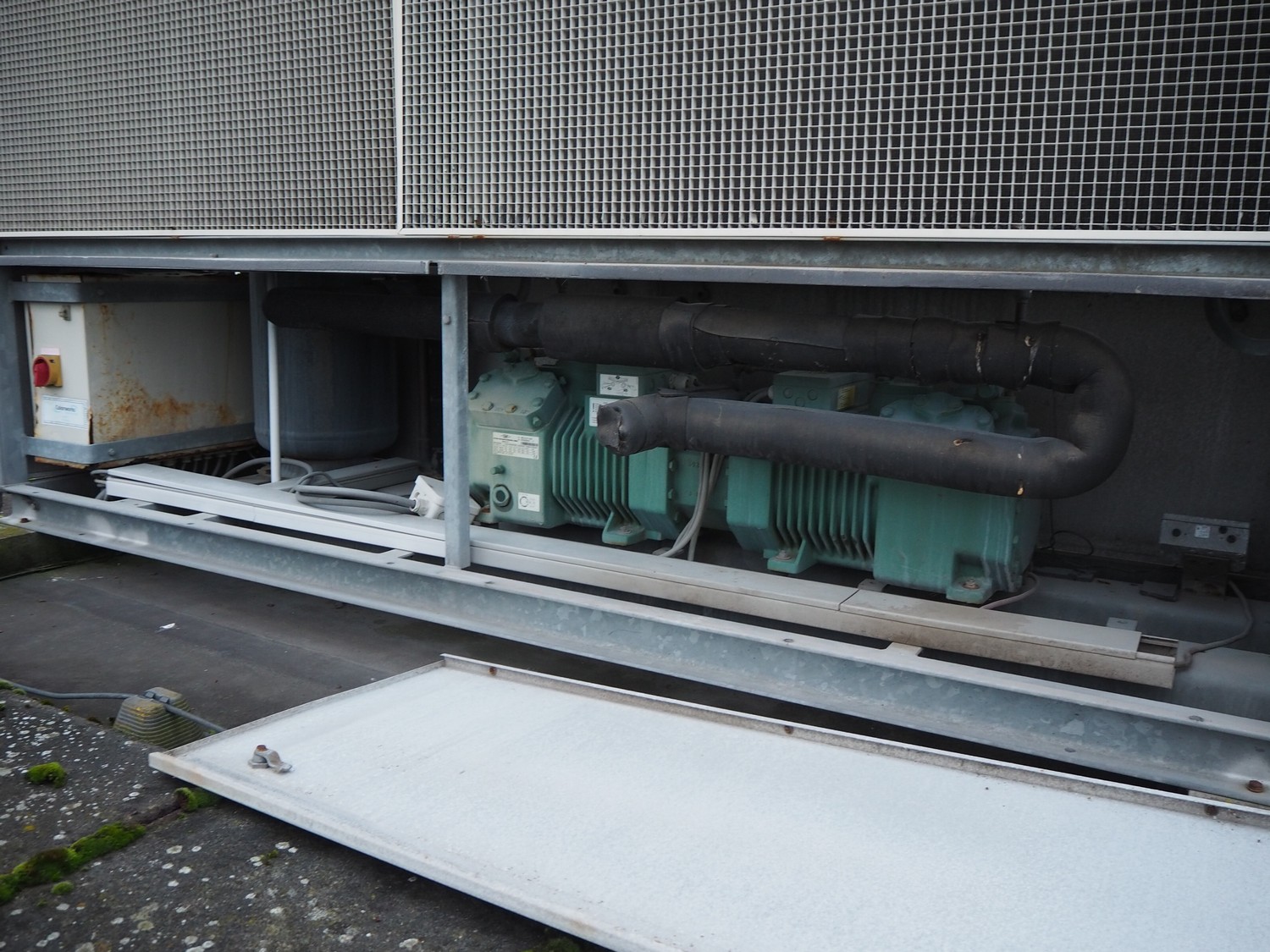 Frigotronic condensing unit with Bitzer Kühlmaschinenbau GmbH cooling compressor, type: CHTCU120/2 SCR R507 V=28 Z=42, ID number: 0018618, year of construction: 2001, 400 V, 3 Ph, 50 Hz, 9 kW, 12 bar, refrigerant: R507, weight: 771 kg, dimensions: 2500 mm x 800 mm x 2000 mm. Situated on the roof. Can be picked-up at a later date as soon as the building will be demolished next year, a date for this is yet unknown.