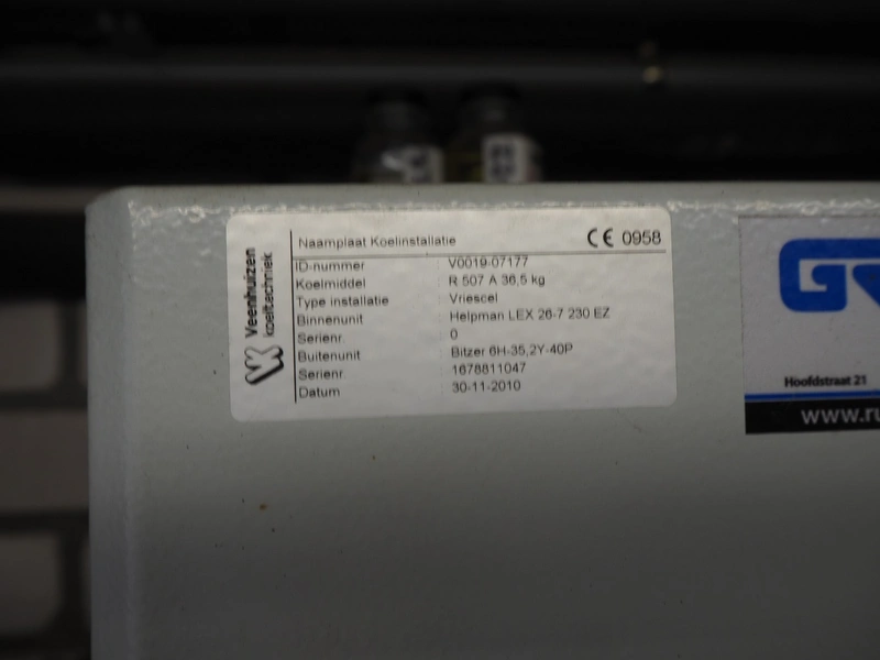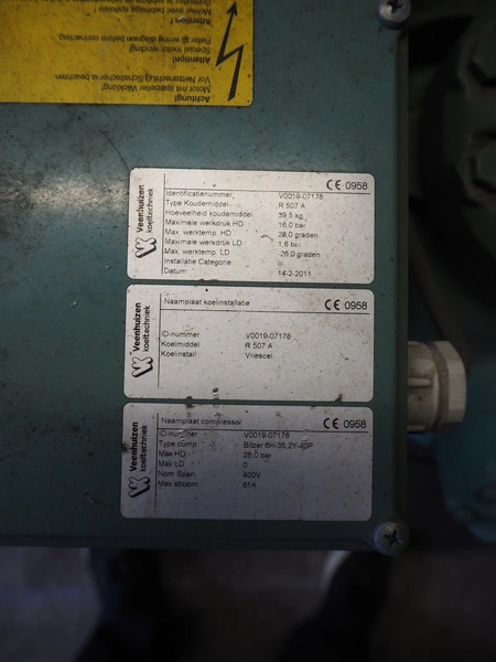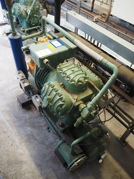 2 Bitzer Kühlmaschinenbau GmbH cooling compressors, type: 6H-35.2Y-40P, serial number: 1678811047 and 1679008231, refrigerant: R449A, dimensions: 900 mm x 1400 mm x 700 mm. Including switch cabinet.