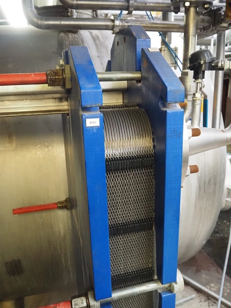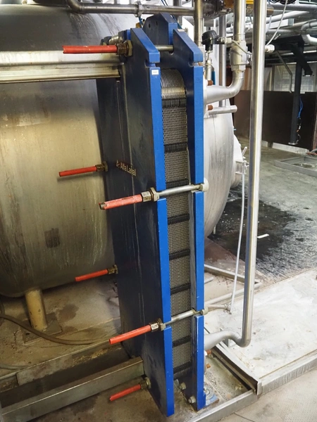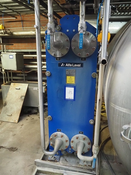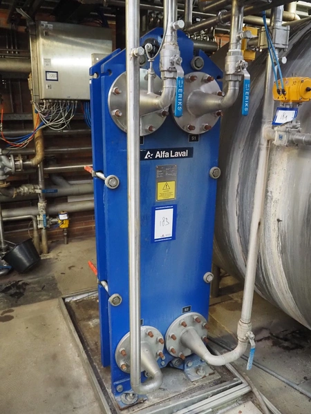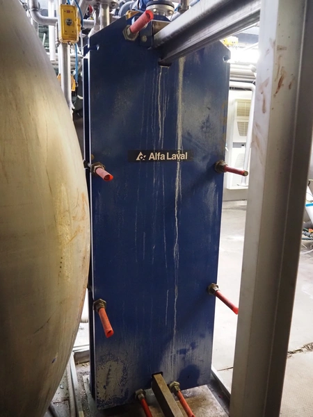 Alfa Laval plate heat exchanger, type: M15-BFM8, manufacturing number: 30103-25741, year of construction: 2001, maximum pressure: 10.0 bar, maximum temperature: 100°C, dimensions: 500 mm x 600 mm x 1900 mm.