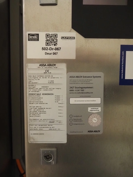 Assa Abloy Entrance Systems AB electrical high speed shutter door, type: HS9030GHY, serial number: NL66136, year of construction: 11-2020, door size: 3500 mm x 3250 mm.