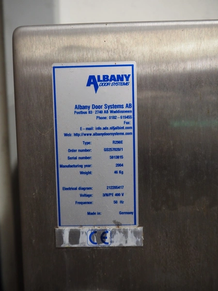 Albany Door Systems electrical high speed shutter door, type: R290E, serial number: 5913815, year of construction: 2004, 400 V, 3 Ph, 50 Hz, door width: 2800 mm, door height: 3000 mm.