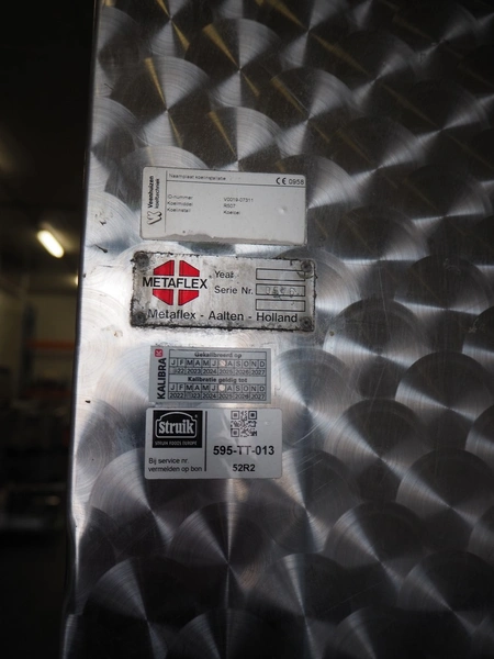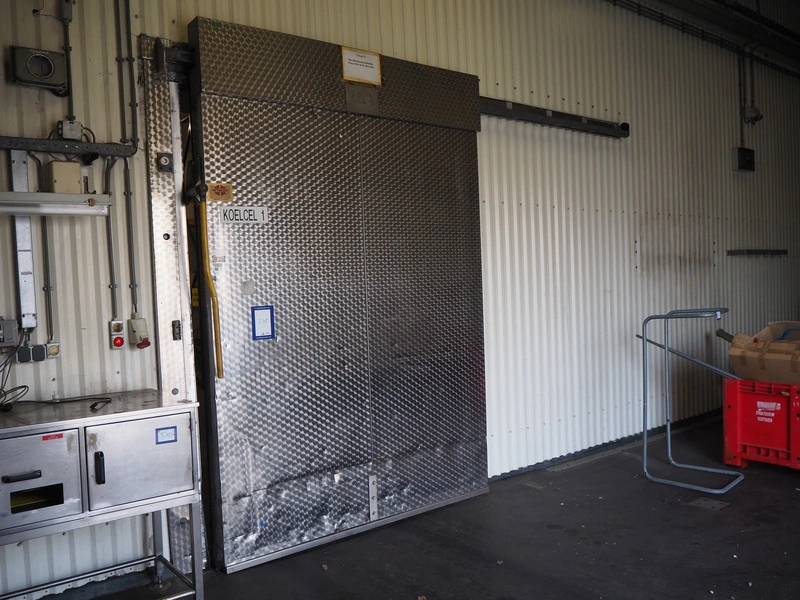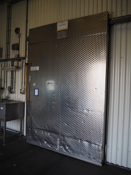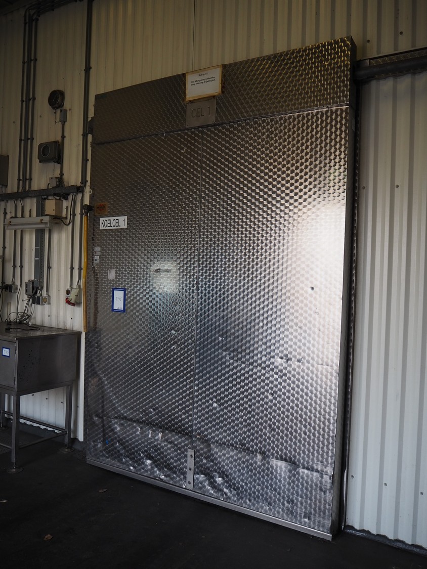 Metaflex s/s refrigeration sliding door, serial number: 0577, dimensions door: 2120 mm x 3140 mm, thickness: 170 mm, rail length: 4300 mm.