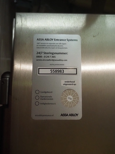 Assa Abloy Entrance Systems AB fire-resistant door, dimensions: 1000 mm x 2110 mm.