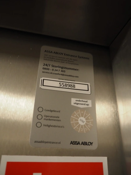 Assa Abloy Entrance Systems AB s/s fire-resistant door, dimensions: 970 mm x 2130 mm.