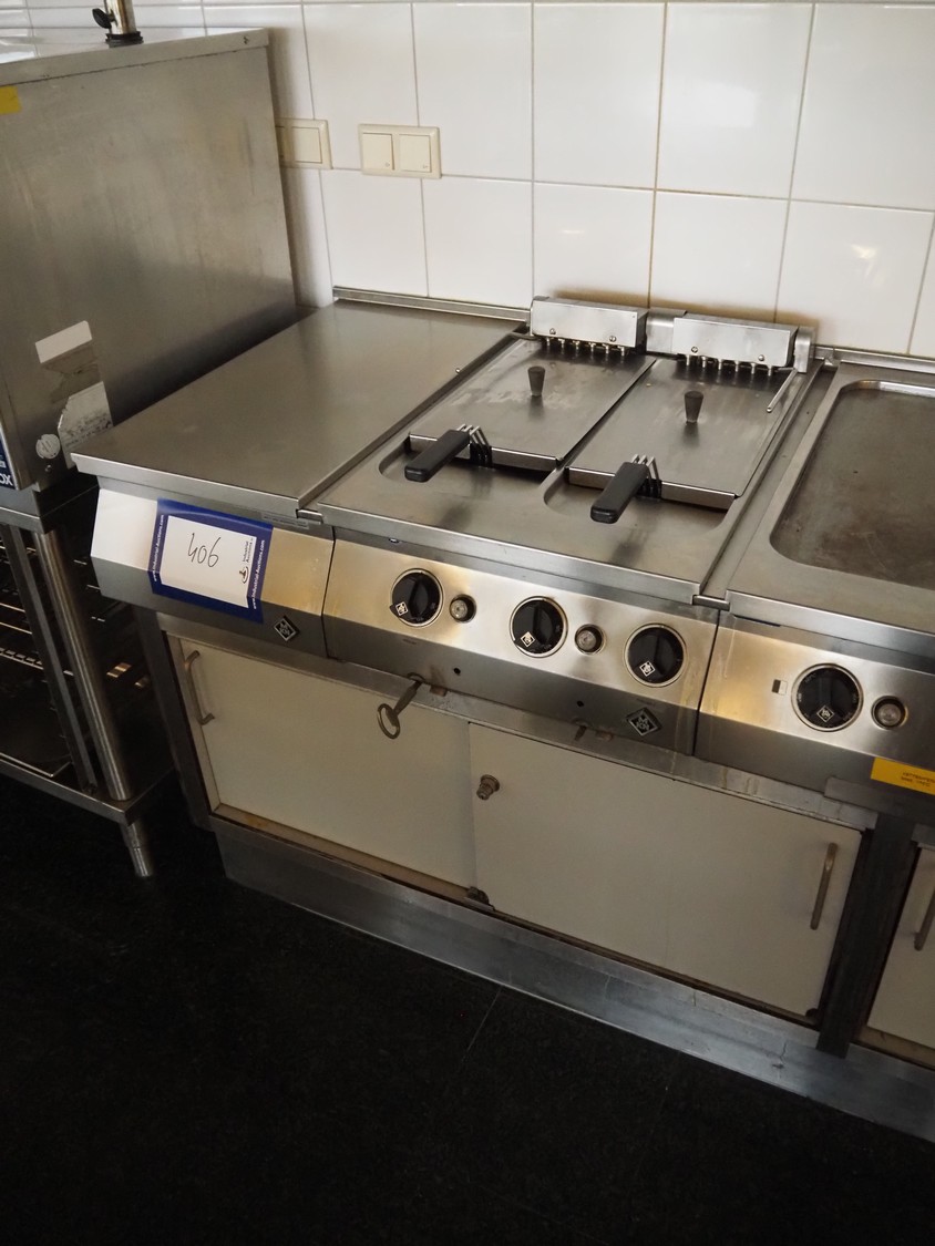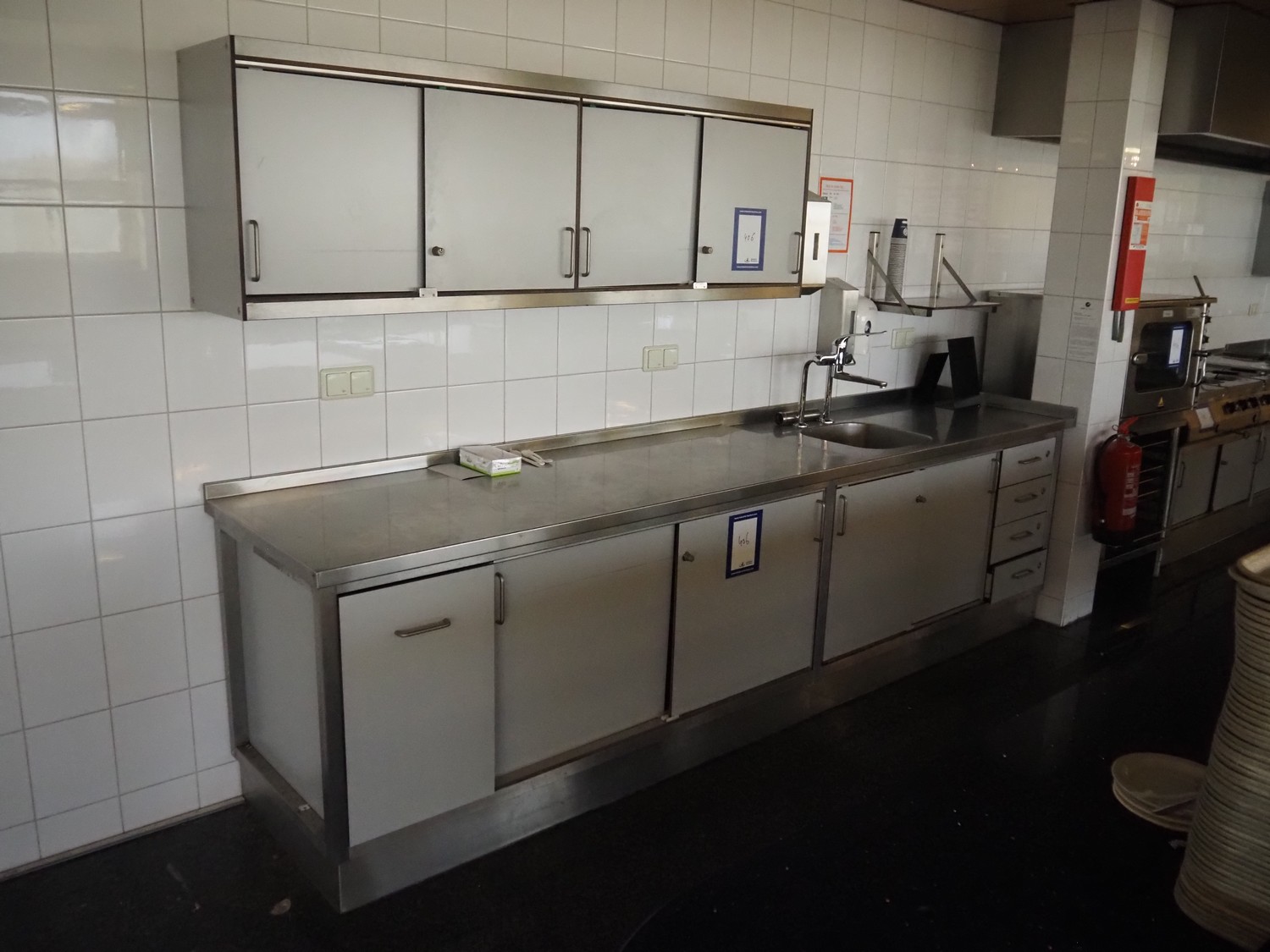 Canteen kitchen inventory, consisting of: Smeva BV refrigerated showcase, type: performer cold-trade, id number: 2001/309187, year of construction: 3-10-01, 240 V, 50 Hz, refrigerant: r 404 a, dimensions: 2500 mm x 1100 mm x 2500 mm, s/s kitchen counter with sink, dimensions: 1600 mm x 700 mm x 900 mm, wall mounted s/s cabinet, dimensions: 1350 mm x 360 mm x 610 mm, MKN kitchen counter, consisting of: double fryer, type: 1220303-02, machine number: 269801, 400 V, 3 Ph, 12.0 kW, cooking plate, type: 1221103-02, machine number: 178401, 400 V, 3 Ph, 7.2 kW, double cooking plate, type: 1223201-01, machine number: 124701, 400 V, 3 Ph, 5.2 kW, total dimensions: 2200 mm x 700 mm x 900 mm, Lainox combi steamer, type: CE105M, number: 046284101JANLLXMA, year of construction: 2001, 400 V, 3 Ph, 50 Hz, 6.15 kW, 150-500 Kpa, 5 floors, dimensions each floor: 535 mm x 310 mm, total dimensions: 800 mm x 750 mm x 1400 mm, s/s extraction hood, dimensions: 3300 mm x 950 mm x 500 mm, s/s kitchen counter with sink, dimensions: 3250 mm x 700 mm x 900 mm, wall mounted s/s cabinet, dimensions: 1900 mm x 360 mm x 610 mm, canteen counter with heated showcase, dimensions: 7800 mm x 1500 mm x 1620 mm, Smeva BV refrigerated showcase, type: performer cold-trade, id number: 2001/309186, year of construction: 3-10-01, 240 V, 50 Hz, refrigerant: r 404 a, dimensions: 2500 mm x 1100 mm x 2500 mm.