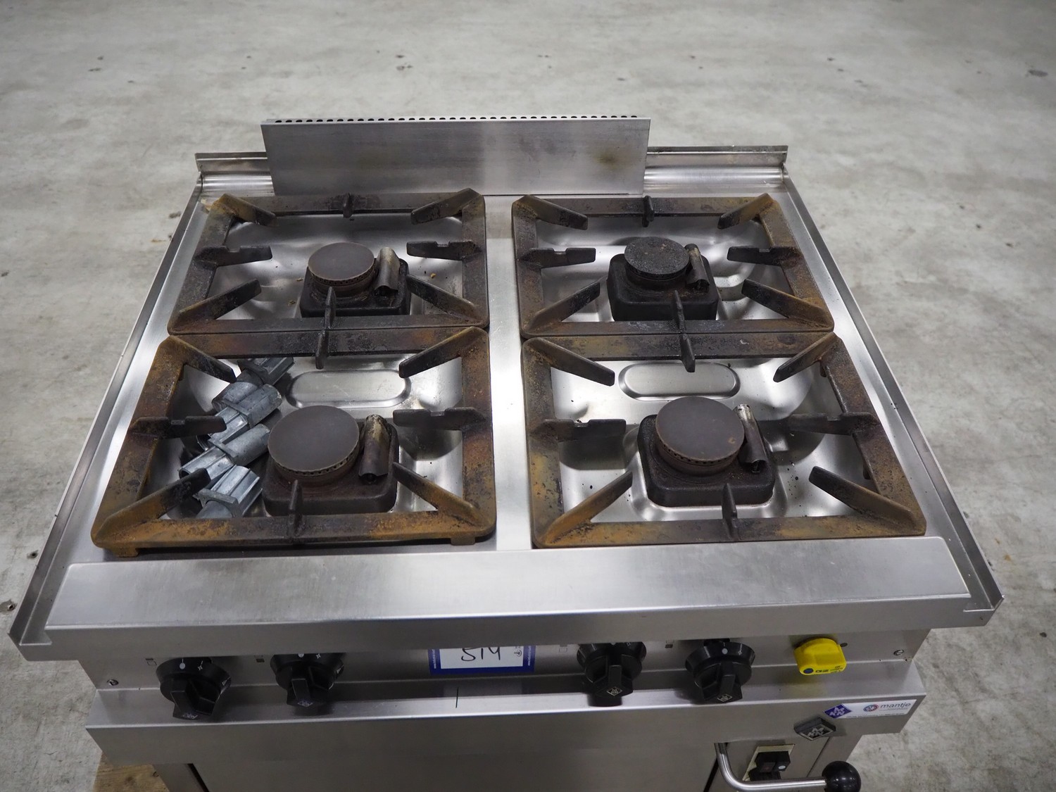MKN 4-pits stove, type: 2163404-06, serial number: 09407454, gas heated, dimensions: 800 mm x 700 mm x 850 mm.