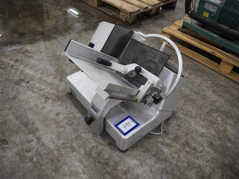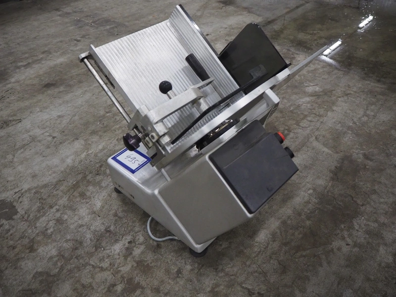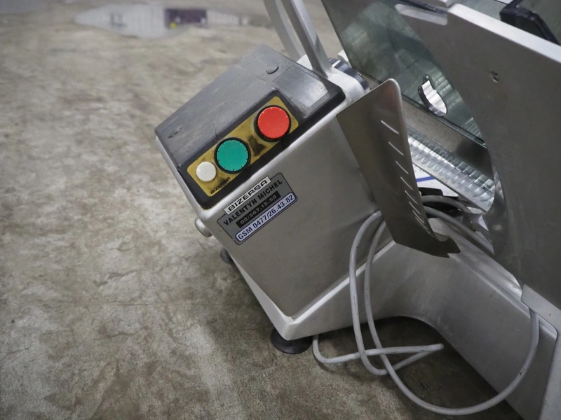 Bizerba slicer, type: SE 8, 220 V, 50 Hz, 1.7 A, 0.300 kW, dimensions: 600 mm x 630 mm x 500 mm.