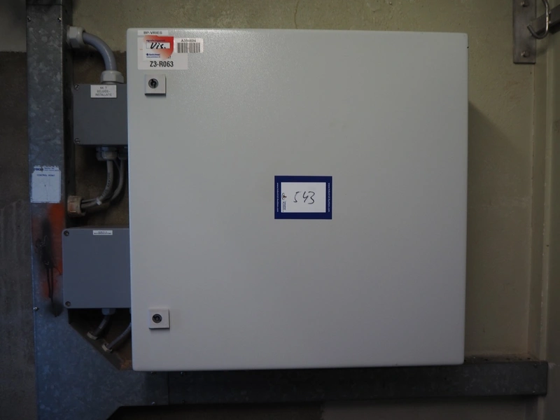 Steel switch cabinet, dimensions: 600 mm x 210 mm x 590 mm.