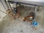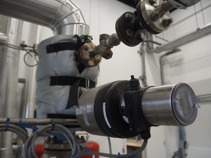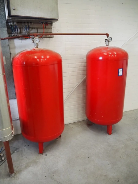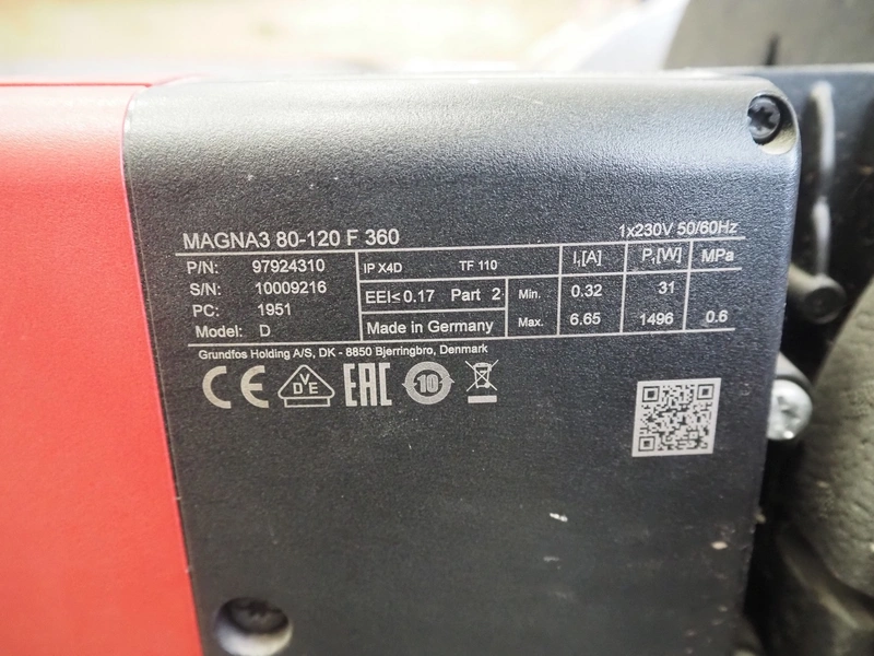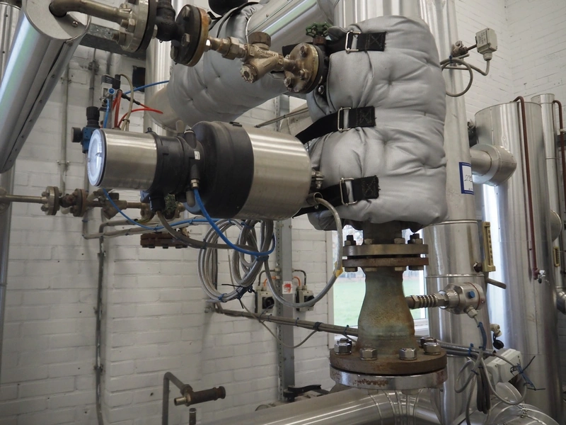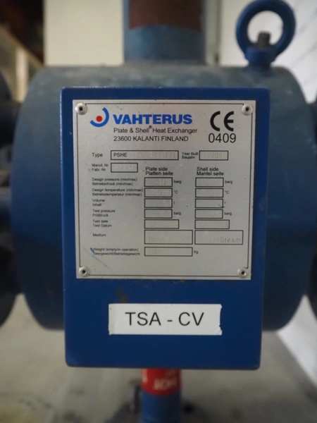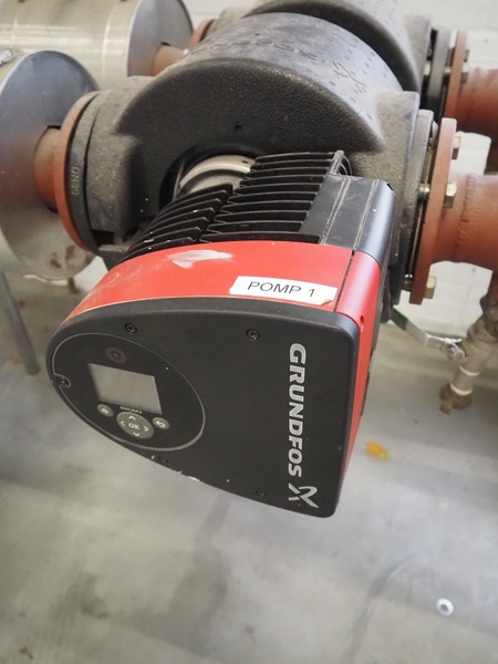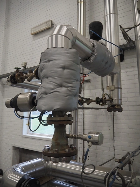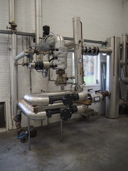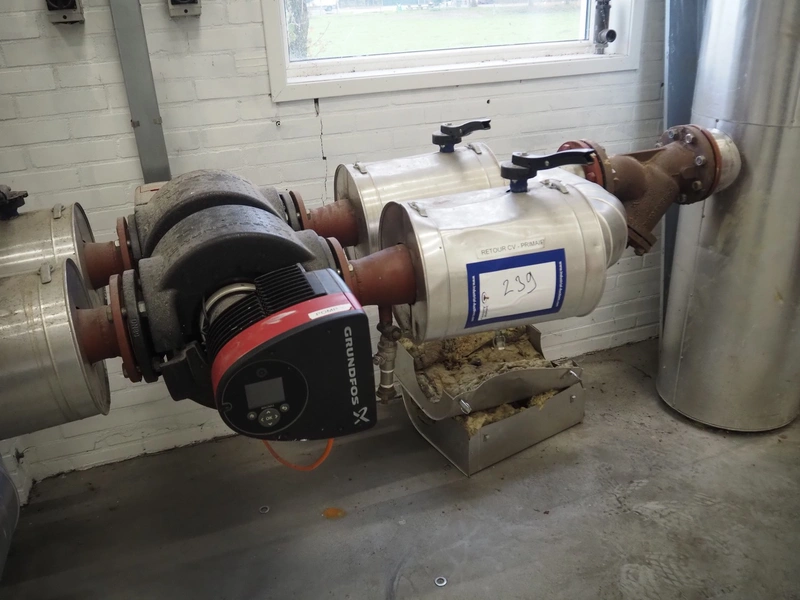 Steam converter installation, consisting of: 3 Grundfos pumps, 2 Flamco pressure vessels, various valves and isolated pipes, total dimensions: 4300 mm x 2000 mm.