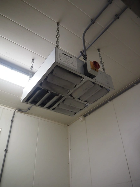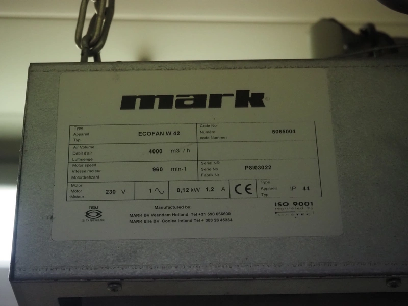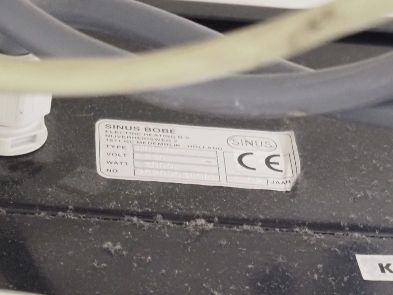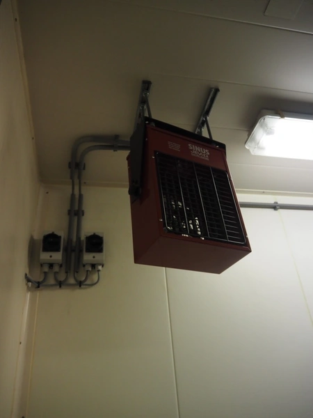 (2x) mark heaters, type: ECOFAN W 42, serial numbers: P8103022 and Za8100412, 230 V, 1 Ph, 0.65/1.2 A, 0.12/0.15 kW, dimensions: (2x) 560 mm x 640 mm x 200 mm, (1x) Sinus Jevi heater, type: WBK 3, 230 V, 13.5 A, 3000 W, dimensions: 420 mm x 230 mm x 280 mm, (1x) Sinus Bobe heater, 230 V, 2000 W, dimensions: 380 mm x 220 mm x 500 mm.