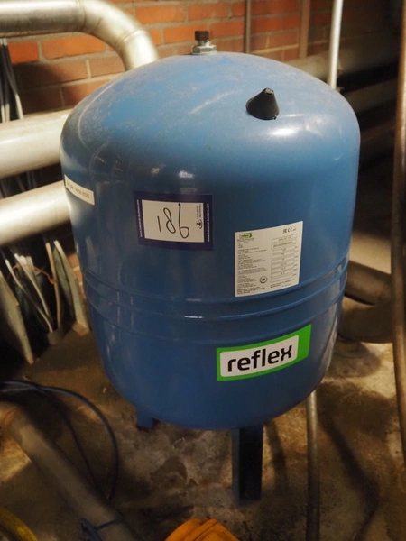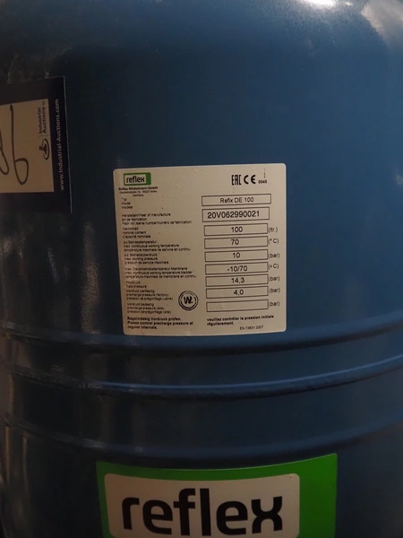 Reflex steel pressure vessel, model: Refix DE 100, serial number: 20V062990021, volume: 100 litres, dimensions: Ø 480 mm x 850 mm.
