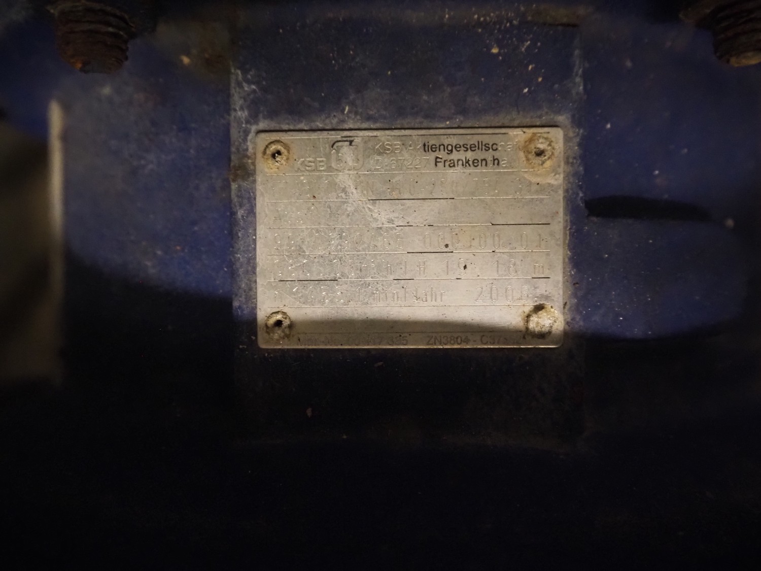 4 Centrifugal pumps, dimensions: (2x) 700 mm x 300 mm x 350 mm, (1x) 500 mm x 250 mm x 300 mm and 1 KSB centrifugal pump, dimensions: 800 mm x 300 mm x 700 mm.