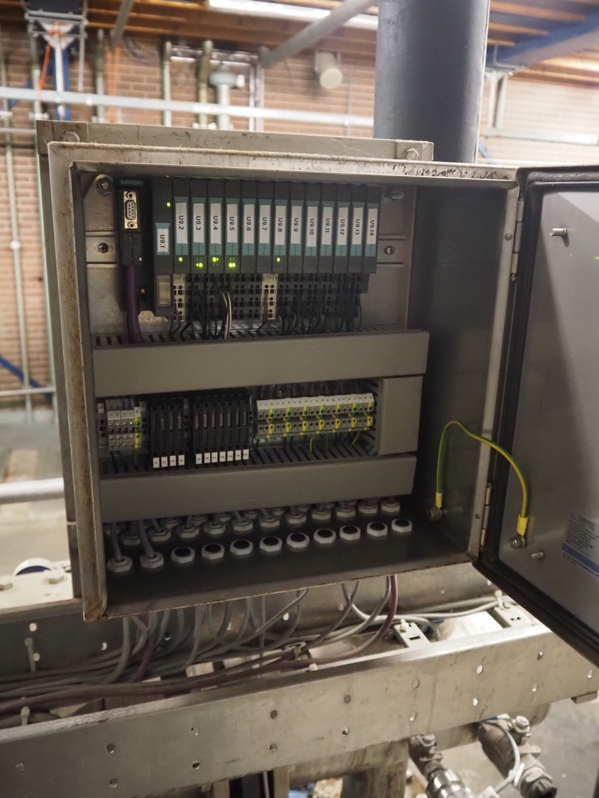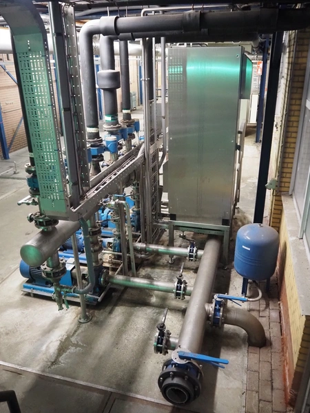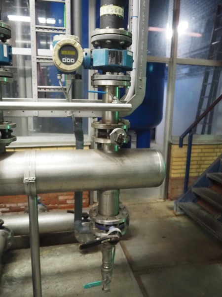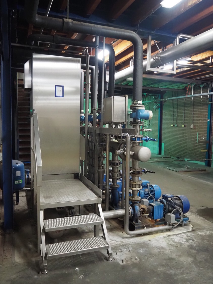 Pump system for de-iron removal installation, consisting of: pressure vessel, dimensions: 450 mm x 450 mm x 900 mm, 4 Stork and SPX Flow centrifugal pumps, dimensions: (4x) 1100 mm x 450 mm x 500 mm, 6 Endress+Hauser flowmeters, dimensions: (6x) 400 mm x 220 mm x 170 mm and switch cabinet, dimensions: 900 mm x 590 mm x 2100 mm.