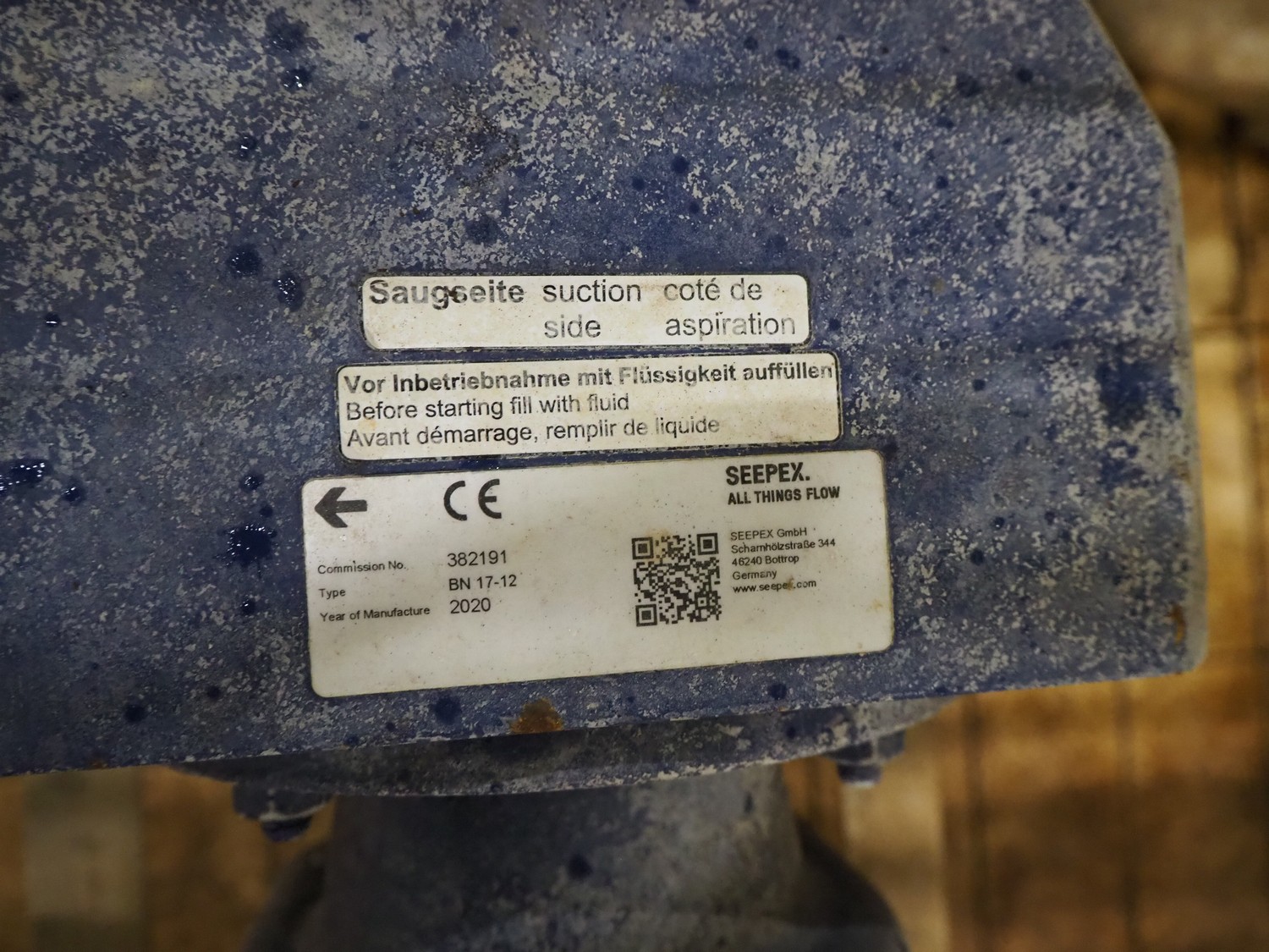 Seepex GmbH progressive cavity pump, type: BN 17-12, year of construction: 2020, dimensions: 1900 mm x 350 mm x 600 mm.