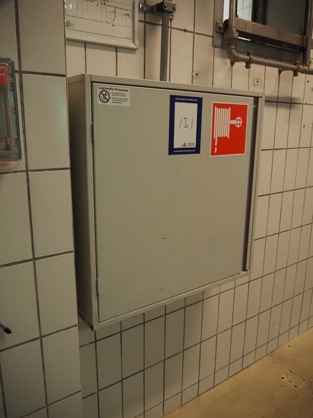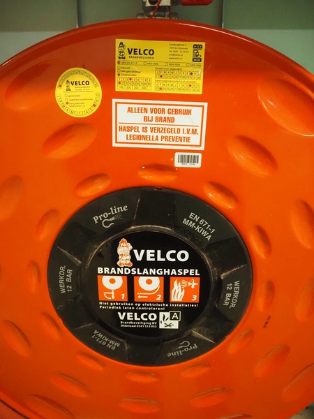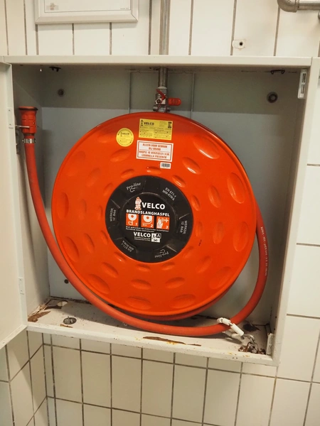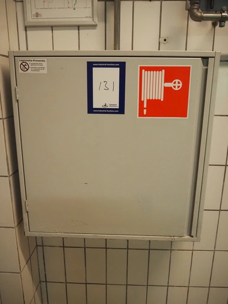 S/s cabinet with Velco fire hose reel, dimensions: 790 mm x 230 mm x 790 mm.