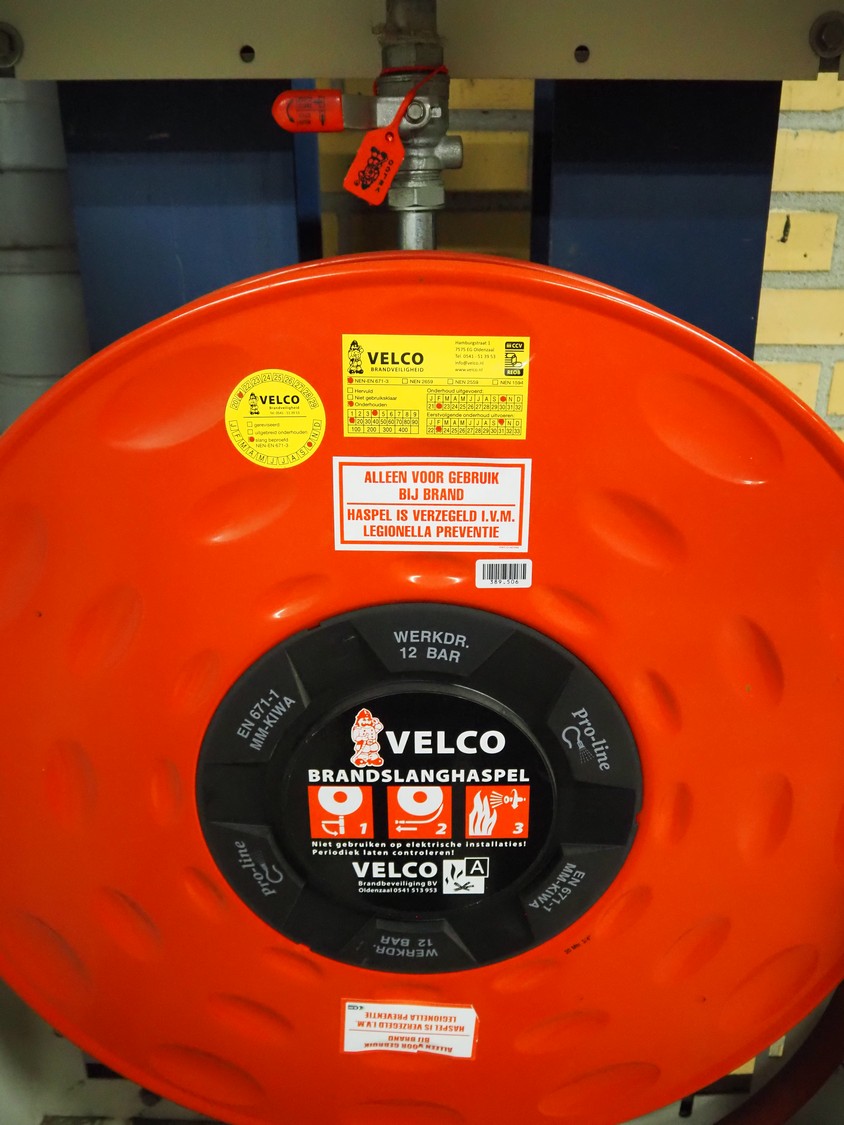 S/s cabinet with Velco fire hose reel, dimensions: 680 mm x 230 mm x 890 mm.