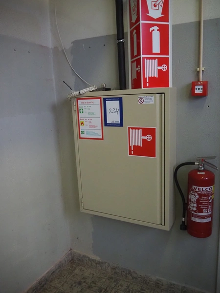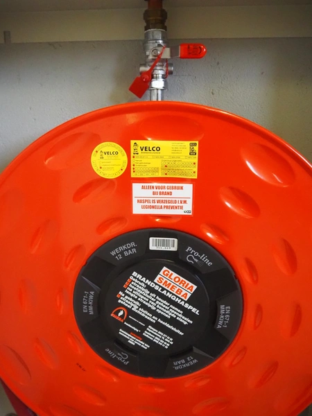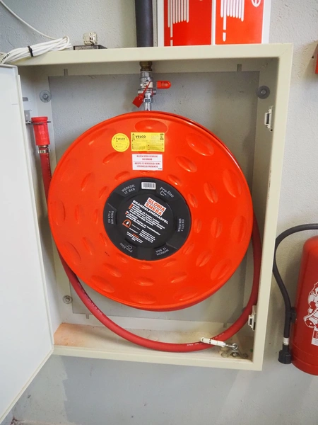 Steel cabinet with Gloria Smeba fire hose reel, dimensions: 730 mm x 180 mm x 940 mm.