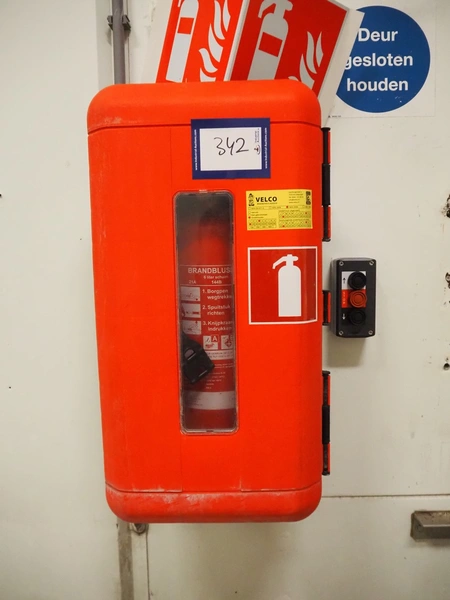 Plastic cabinet with Velco fire extinguisher, dimensions: 330 mm x 240 mm x 600 mm.