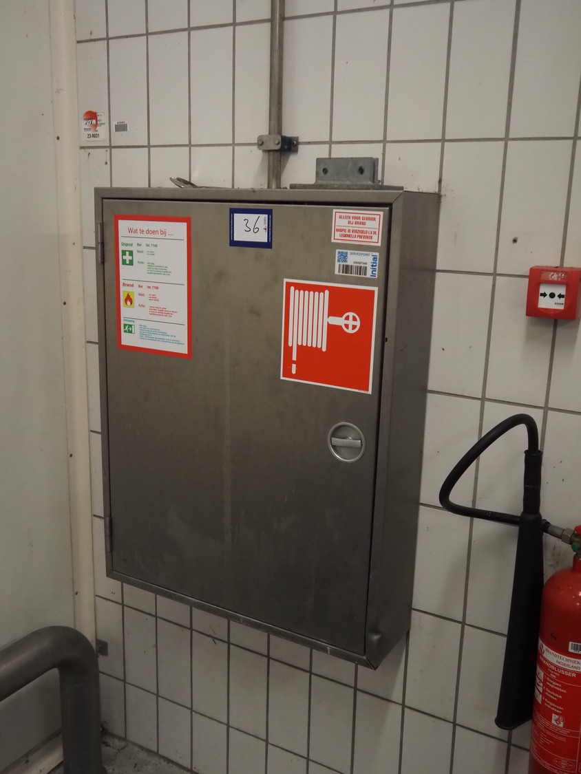 S/s cabinet with Gloria Smeba fire hose reel, dimensions: 730 mm x 180 mm x 940 mm.