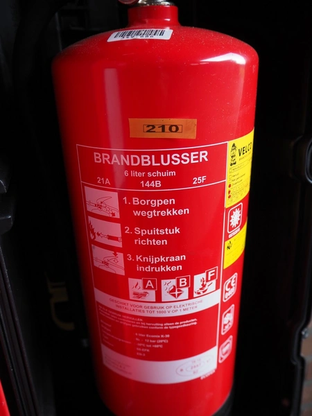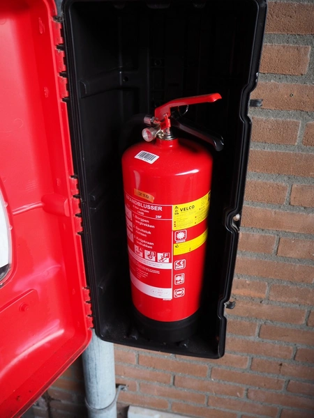 Plastic cabinet with Velco fire-extinguisher, dimensions: 300 mm x 260 mm x 670 mm.