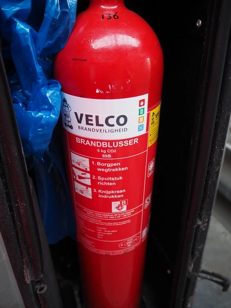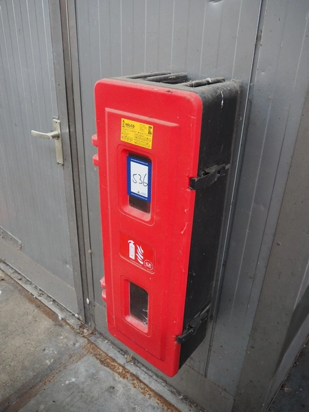 Plastic cabinet with Velco fire extinguisher, dimensions: 320 mm x 270 mm x 830 mm.
