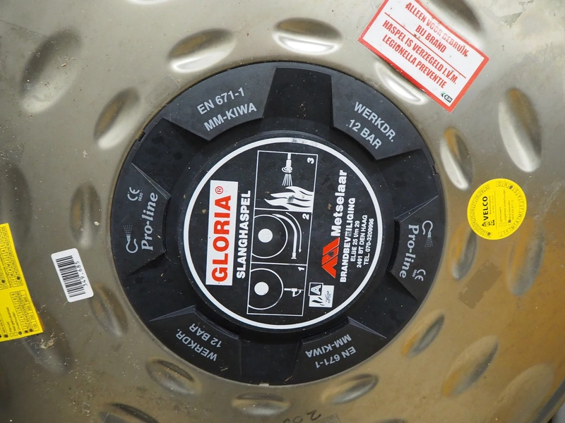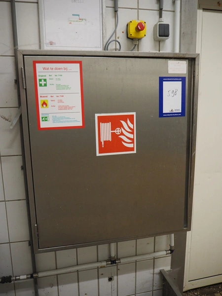S/s cabinet with Gloria Smeba fire hose reel, dimensions: 730 mm x 180 mm x 940 mm.