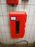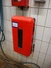 Plastic fire extinguisher cabinet, dimensions: 320 mm x 270 mm x 830 mm, fire extinguisher is missing.