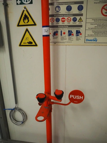 Safety shower, dimensions: 340 mm x 700 mm x 2440 mm.