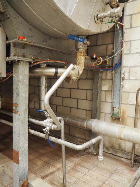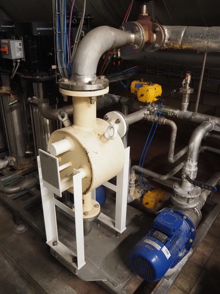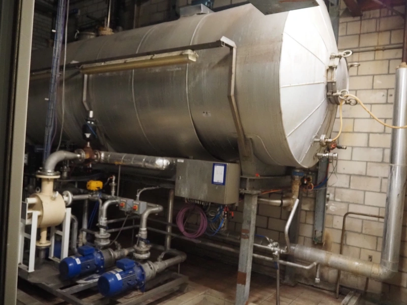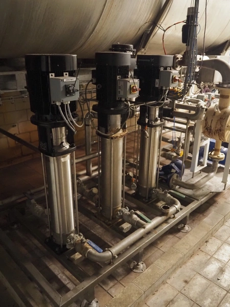 Steel insulated tank with pump installation, consisting of : 3 Grundfos circulation pumps and 2 Lowara centrifugal pumps, total dimensions: 5600 mm x 21600 mm x 3400 mm. Including switch cabinet.
