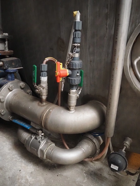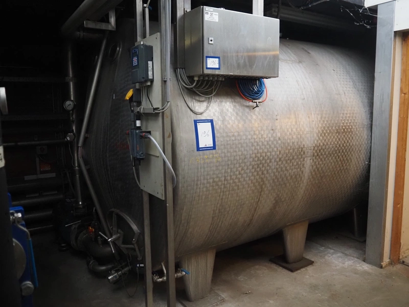 S/s tank, Ø tank: 2200 mm, total dimensions tank: 3400 mm x 2200 mm x 2400 mm. Including s/s switch cabinet, dimensions switch cabinet: 590 mm x 220 mm x 370 mm.