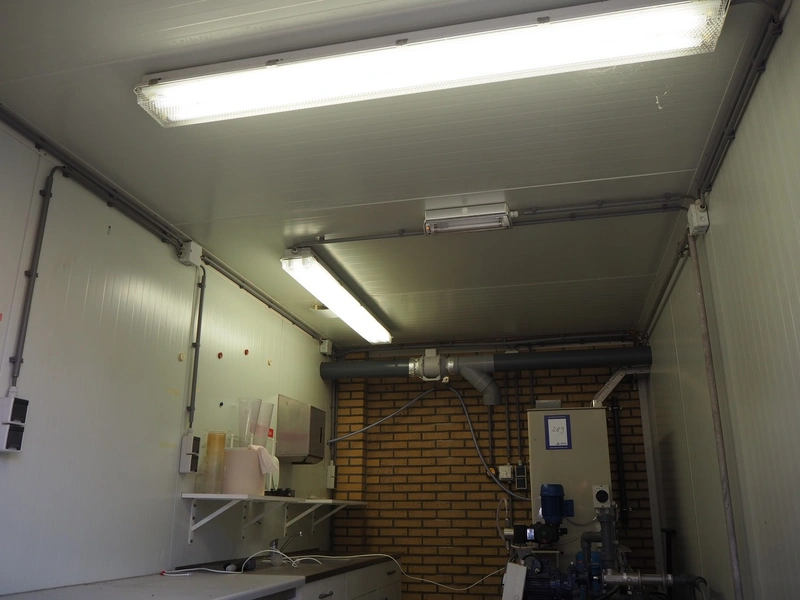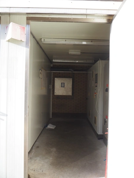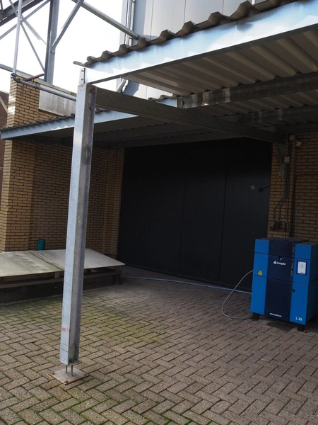 Canopy with shed, dimensions: 13600 mm x 4700 mm x 3200 mm.