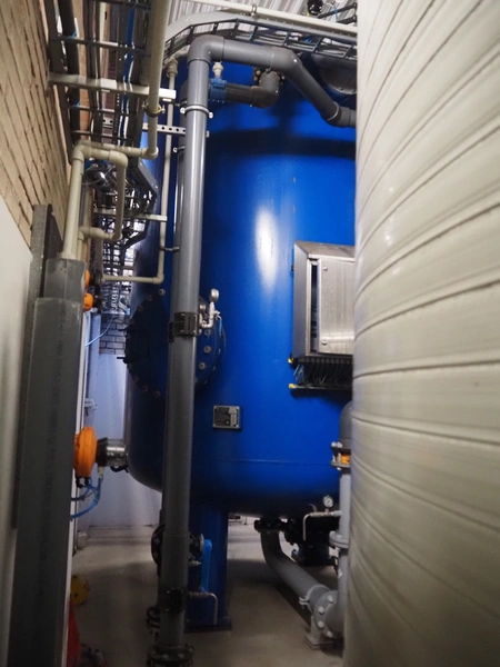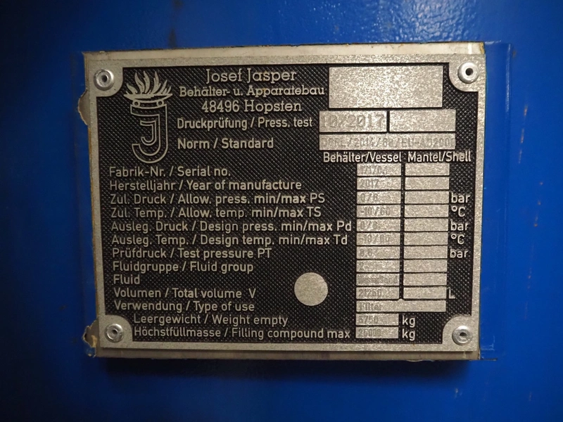 2 Josef Jasper steel water filter tanks for de-iron removal installation, serial number: 17170.1, year of construction: 2017, empty weight: 5750 kg, maximum filling compount: 25000 kg, 2 Endress+Hauser flowmeters, dimensions tanks: (2x) 2600 mm x 2600 mm x 5000 mm. Screen from display is missing. Can be picked-up at a later date as soon as the building will be demolished next year, a date for this is yet unknown.