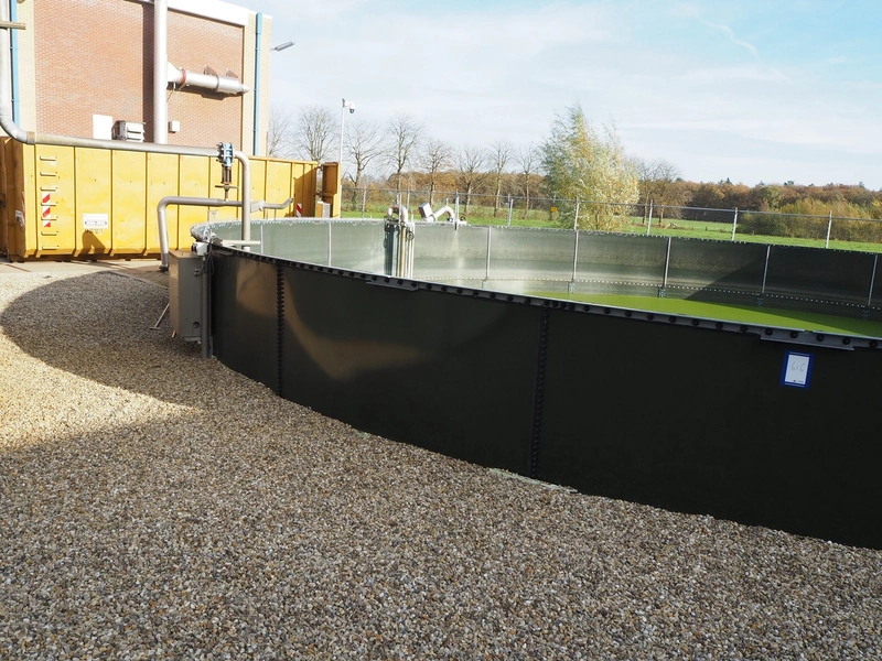 Industrial Storage Systems steel effluent buffer tank, diameter: 20000 mm, height: 1400 mm.