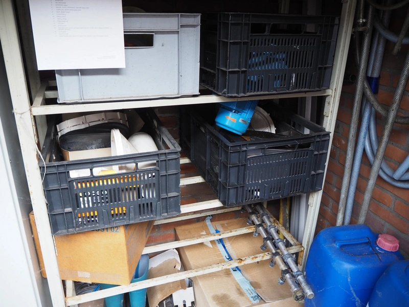 Steel rack with parts for water treatment, dimensions: 1030 mm x 420 mm x 2100 mm.