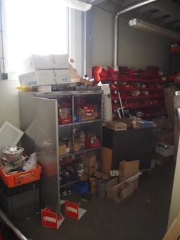 Large amount of light fixtures and electrical parts. Including steel racks.1 bidLot is closed