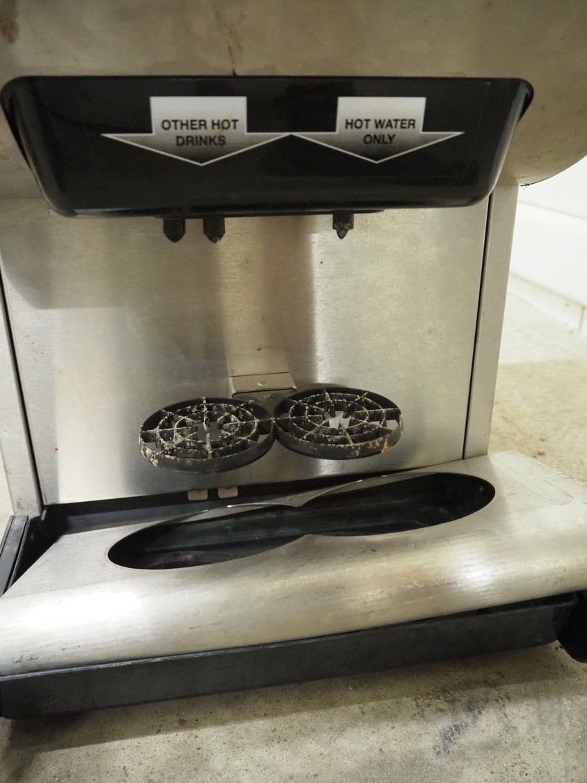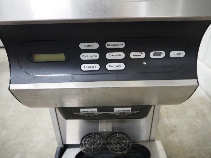 D&T Products coffee machine, type: FD520, 230 V, 50 Hz, 2800 W, 6 bar, dimensions: 450 mm x 360 mm x 700 mm.