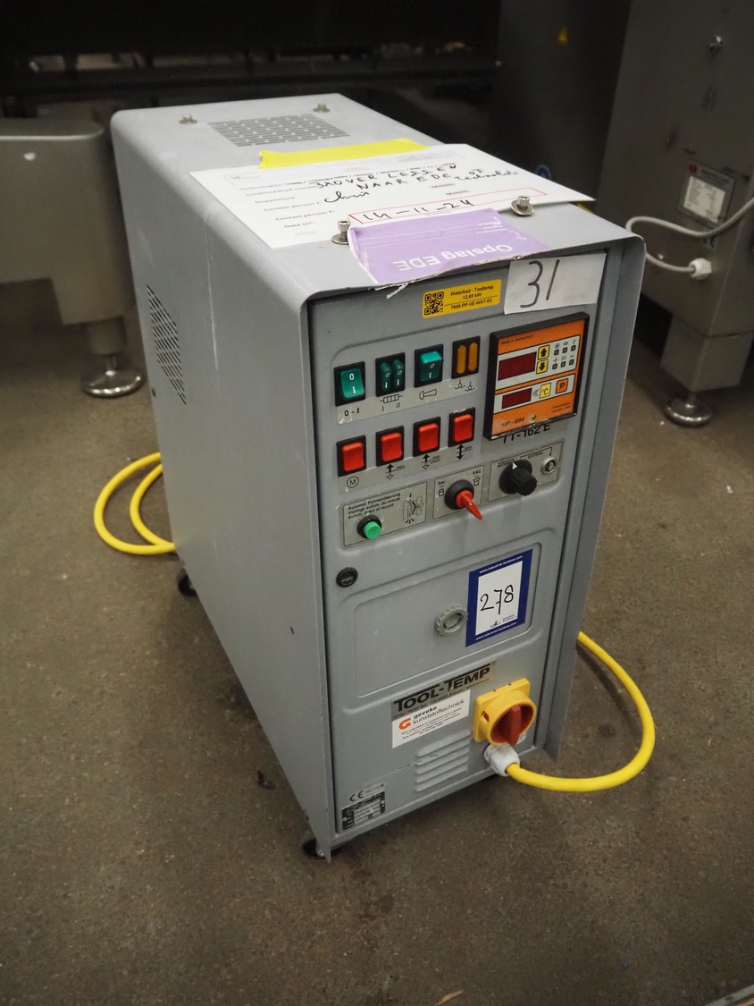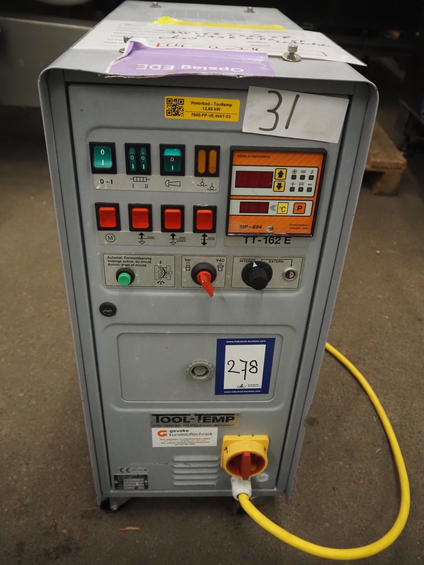 Tool-Temp temperature control unit, type: TT-162 E, serial number: 25-05688-4, (3x) 380/415 V, 50 Hz, 12'850 Watt, dimensions: 600 mm x 305 mm x 710 mm.