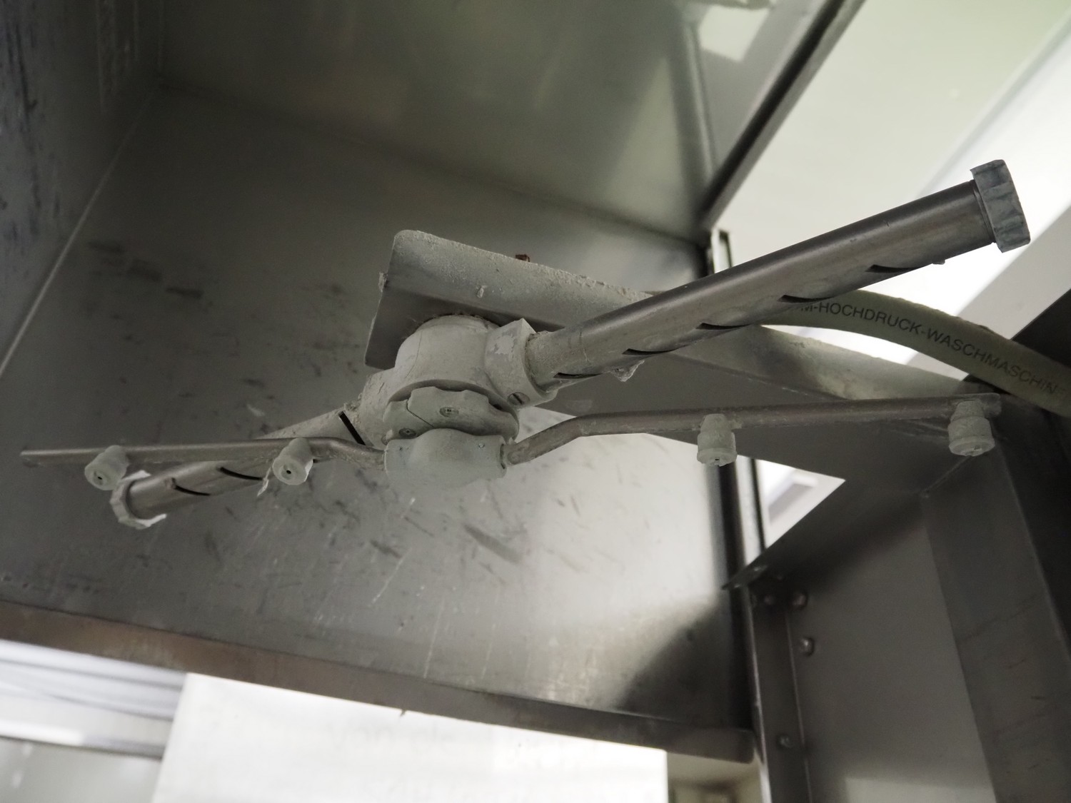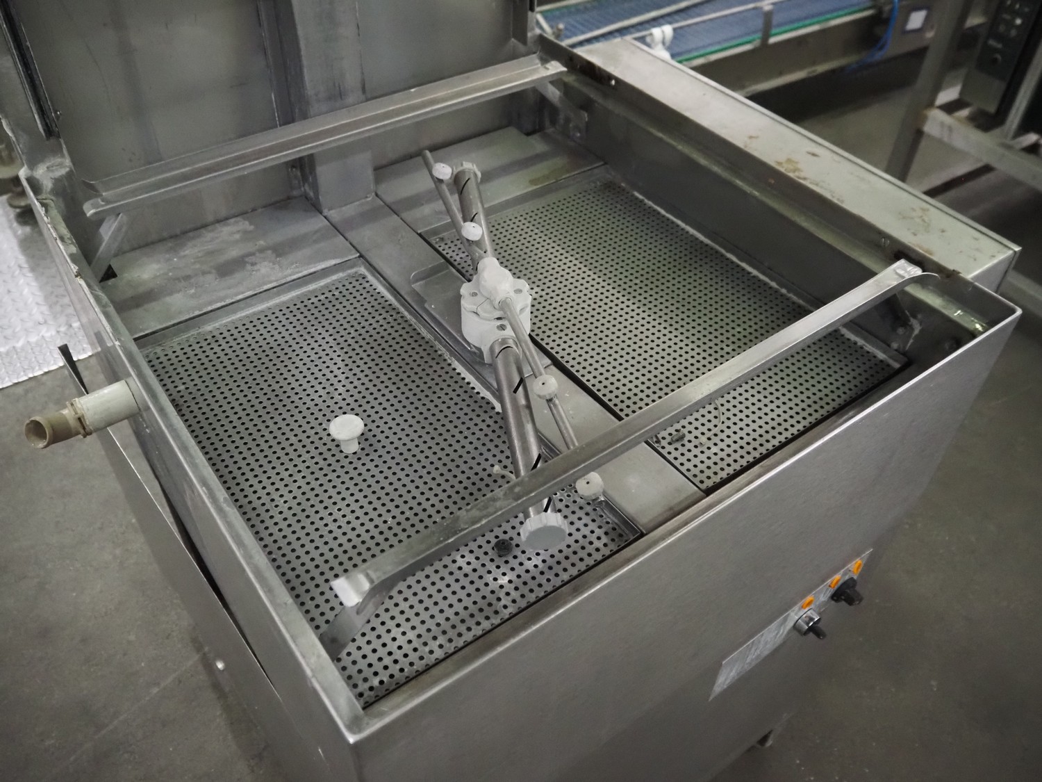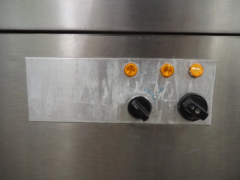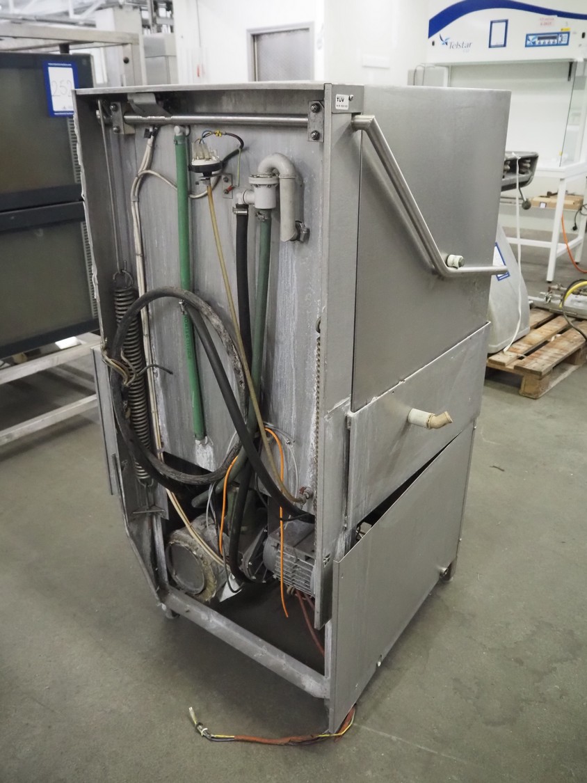 Meiko dishwasher, type DV 120 B, machine number: 58.795, 220 V, 3 Ph, 50 Hz, 38 A, 14 kW, inside dimensions: 520 mm x 520 mm, total dimensions: 850 mm x 800 mm x 1375 mm. Missing back panel.