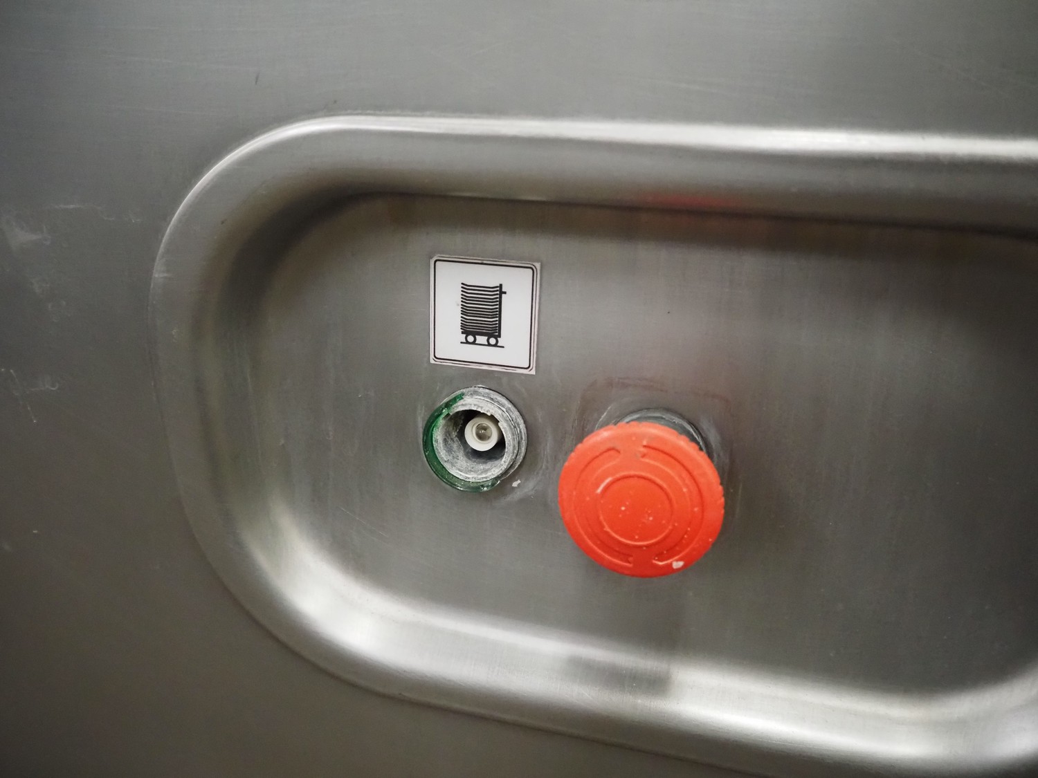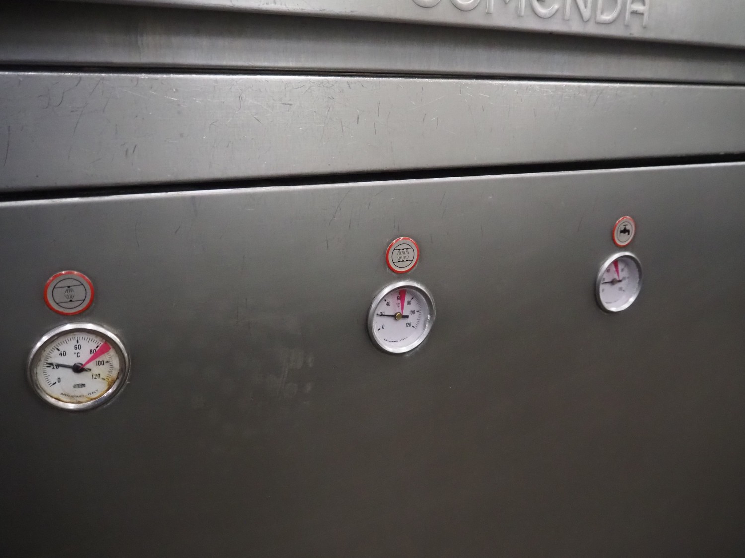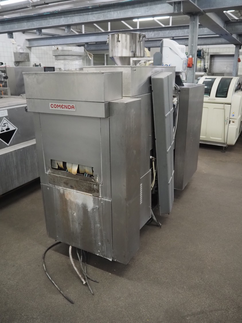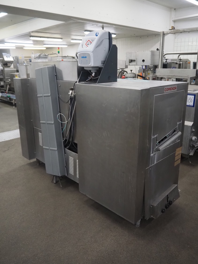 Comenda plate washer, type: LAV 1000, model: P1 13931/11/00, 380 V, 3 Ph, 50 Hz, 28.84 kW, 43 A, clearance: 385 mm x 35 mm, total dimensions: 2460 mm x 900 mm x 1950 mm.