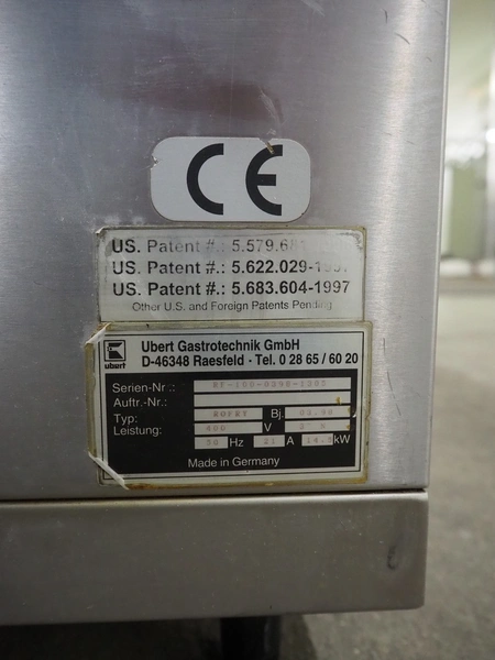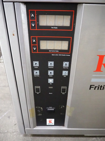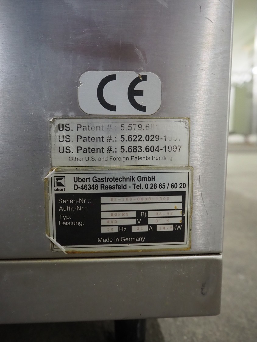 Ubert Gastrotechnik GmbH fryer, type: ROFRY, serial number: RF-100-0398-1305, year of construction: 03-98, 400 V, 3 Ph, 50 Hz, 21 A, 14.5 kW, dimensions basket: 200 mm x 200 mm x 210 mm, total dimensions: 660 mm x 600 mm x 700 mm.