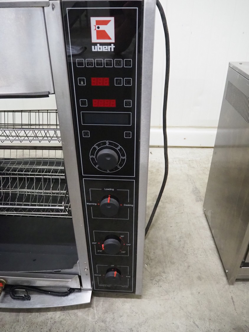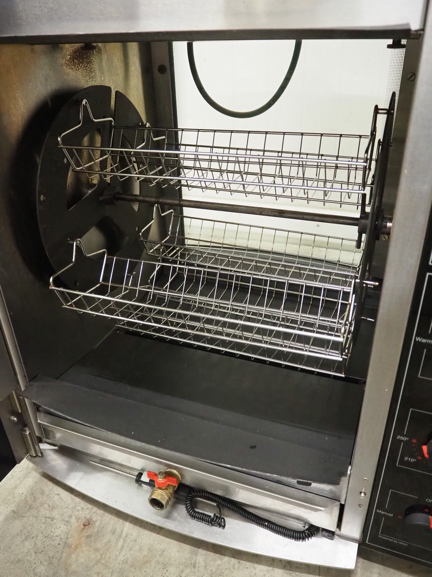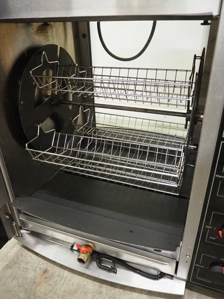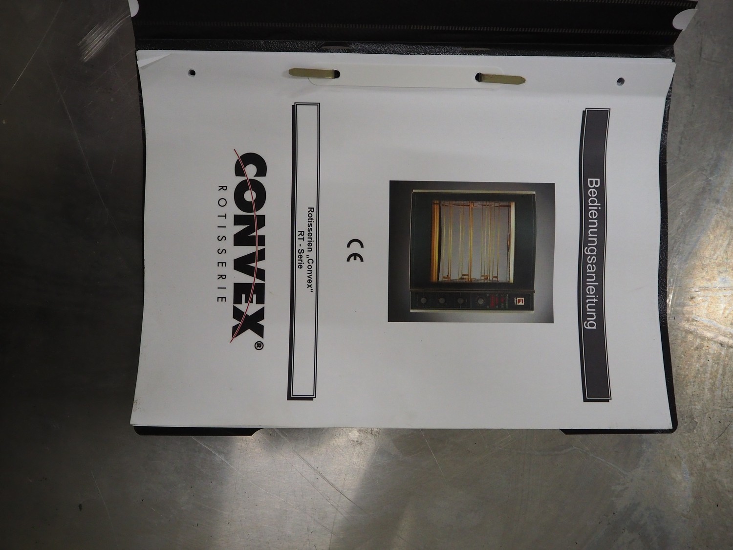 Ubert Gastrotechnik GmbH rotisserie grill, model: Convex, RT Serie, 6 baskets, dimensions basket: (6x) 460 mm x 170 mm, total dimensions: 800 mm x 700 mm x 910 mm.
