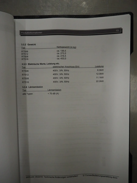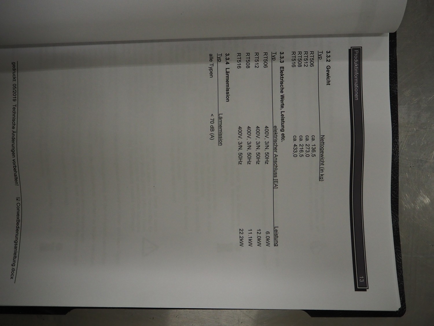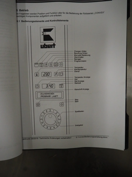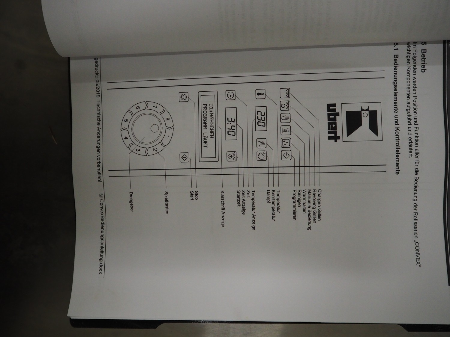Ubert Gastrotechnik GmbH rotisserie grill, model: Convex, RT Serie, 6 baskets, dimensions basket: (6x) 460 mm x 170 mm, total dimensions: 800 mm x 700 mm x 910 mm.
