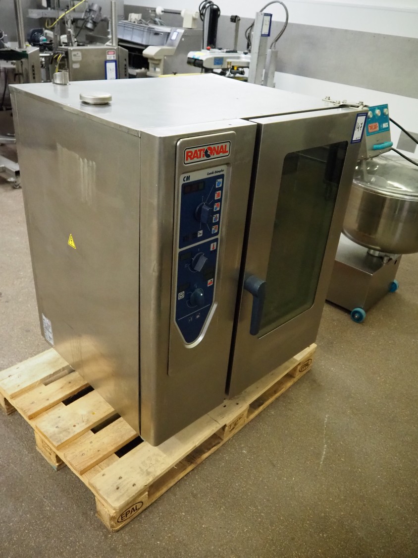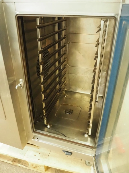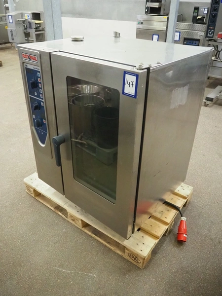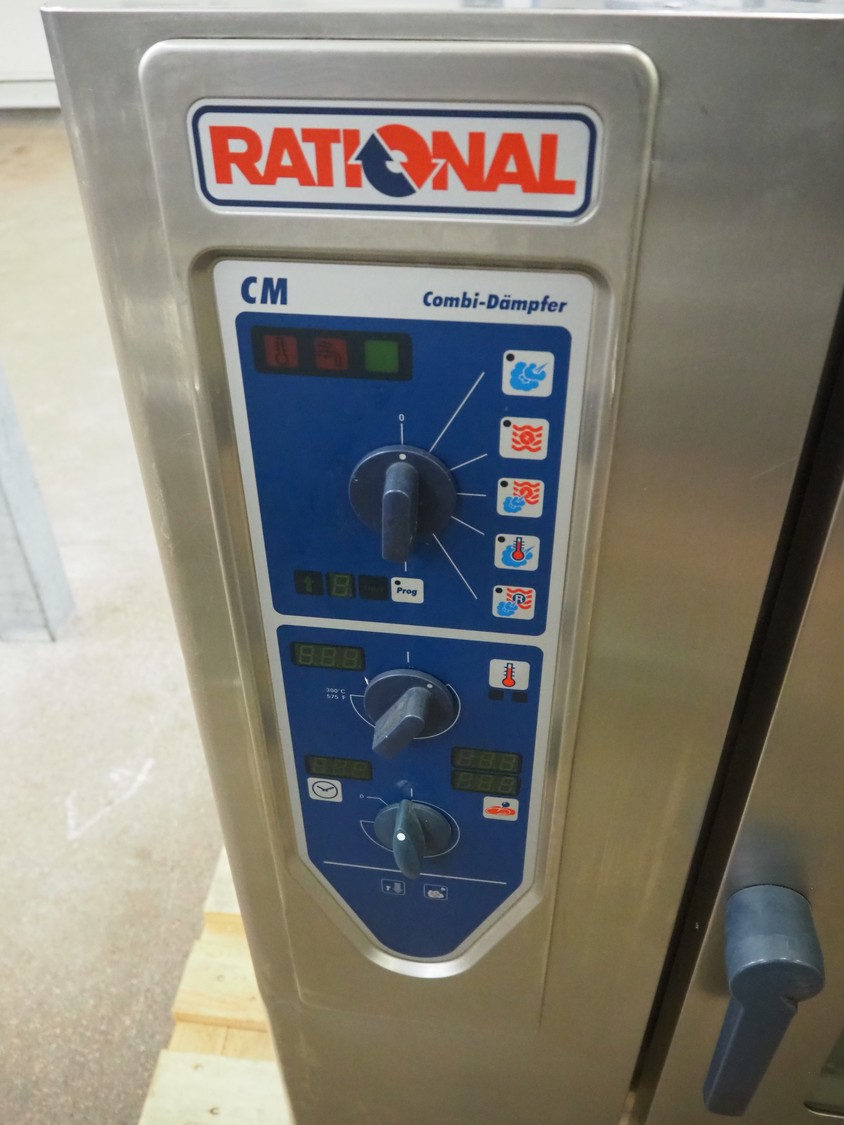 Rational combi steamer, 10 floors, floor dimensions: (10x) 540 mm x 320 mm, total dimensions: 900 mm x 840 mm x 1100 mm.