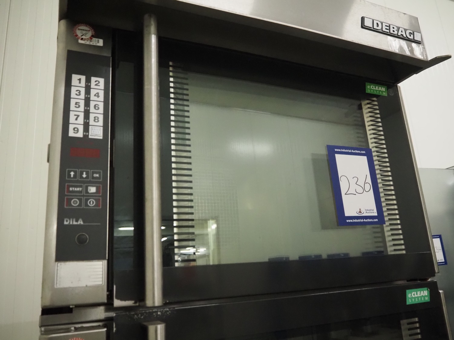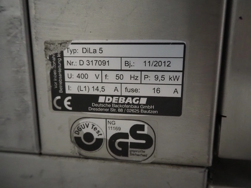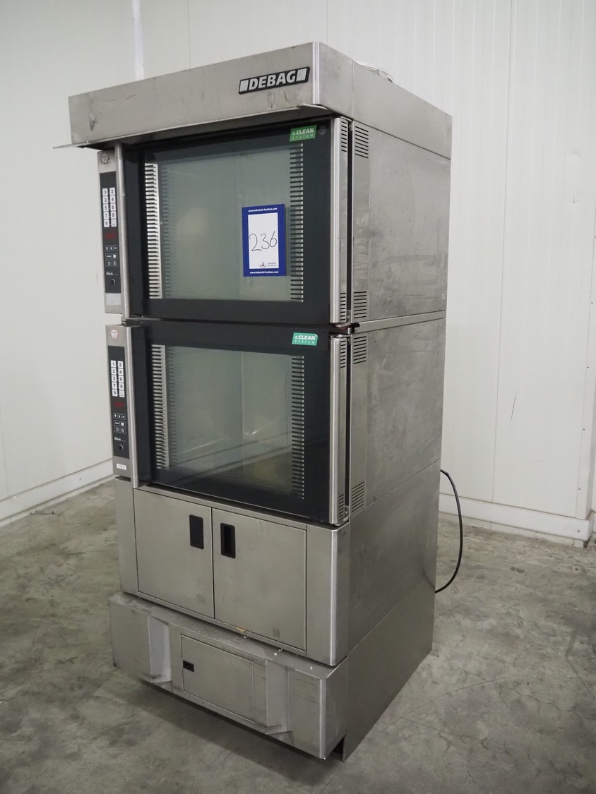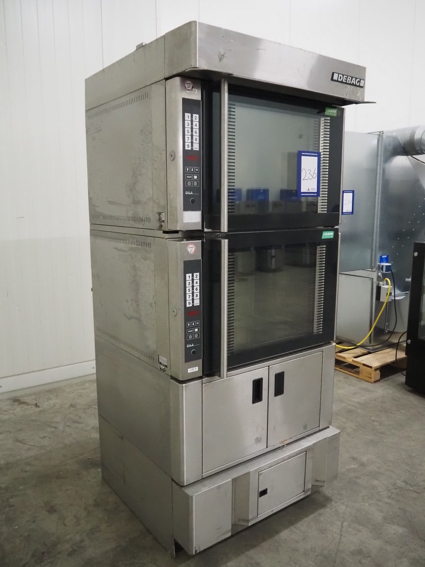 DEBAG double stacked oven, type Dila 5, serial number: D 317091, year of construction: 11/2012, 400 V, 50 Hz, 14.5/16 A, 9.5 kW, inside dimensions: (2x) 700 mm x 440 mm x 440 mm, total dimensions: 1150 mm x 950 mm x 2100 mm.