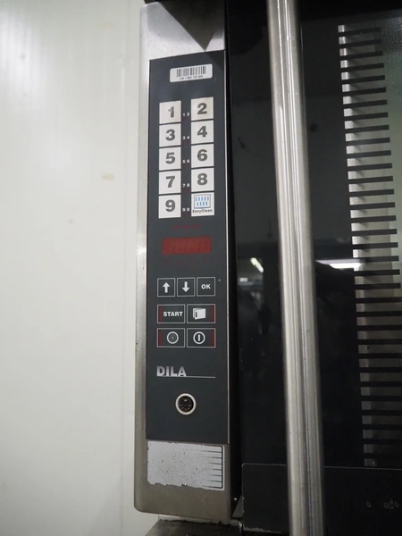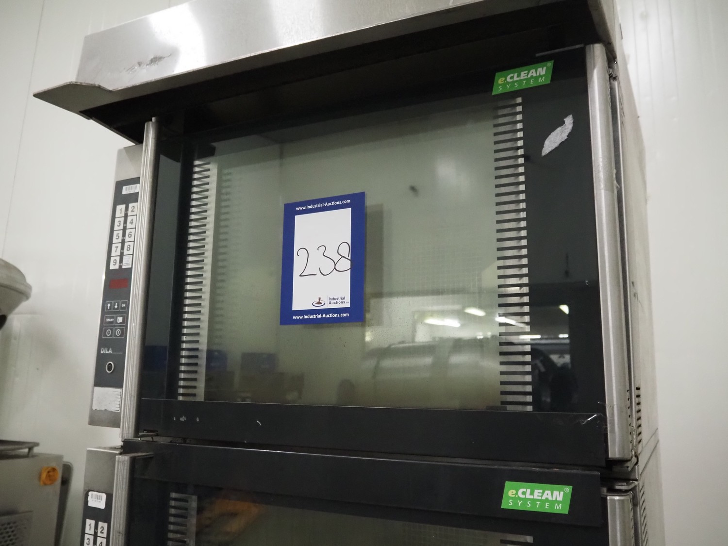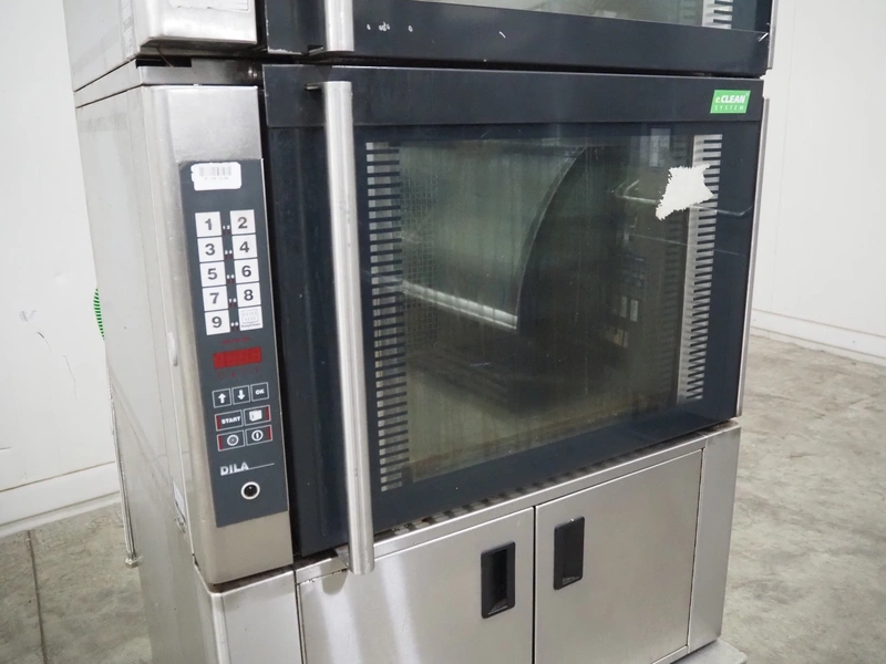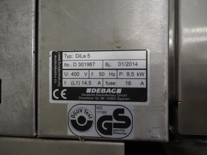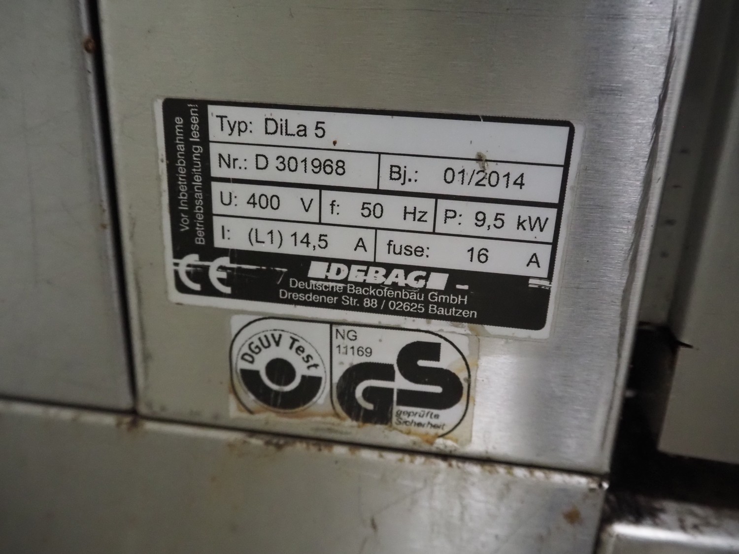 DEBAG double stacked oven, type: Dila 5, serial number: D 301967/D 301968, year of construction: 01/2014, 400 V, 50 Hz, 14.5/16 A, 9.5 kW, inside dimensions: (2x) 700 mm x 440 mm x 440 mm, total dimensions: 1150 mm x 950 mm x 2100 mm.