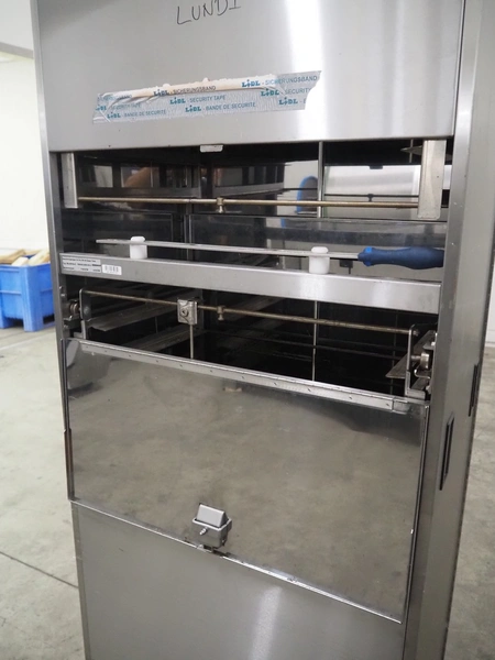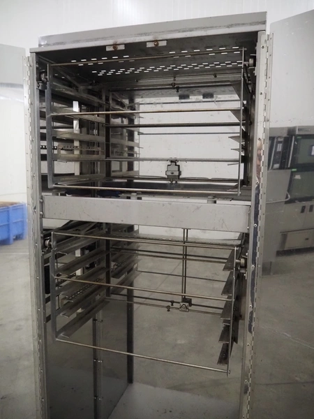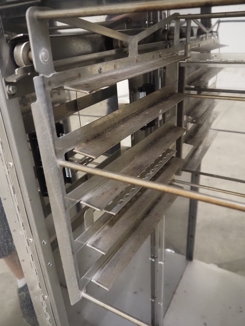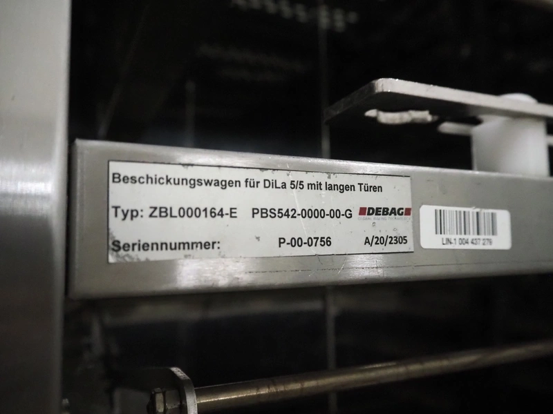 DEBAG loading trolley for oven, type: ZBL000164-E, serial number: P-00-0756, 10 floors, floor dimensions: (10x) 620 mm x 355 mm, total dimensions: 765 mm x 530 mm x 1985 mm.