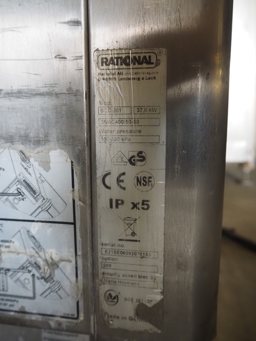 Rational combisteamer, model: SCC201, serial number: E21SE06092076153, year of construction: 2006 400 V, 3 Ph, 50/60 Hz, 37 kW, electric heated, dimensions: 880 mm x 750 mm x 1040 mm.