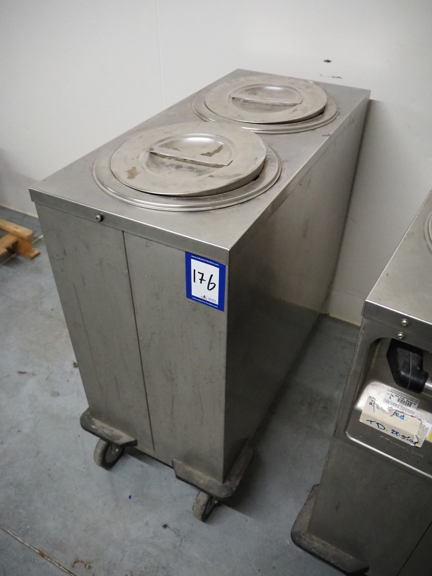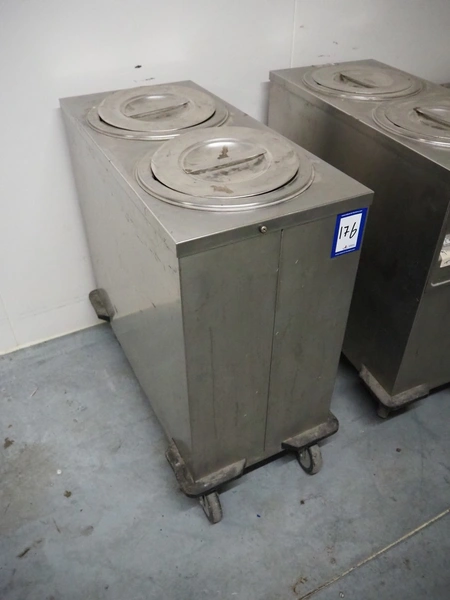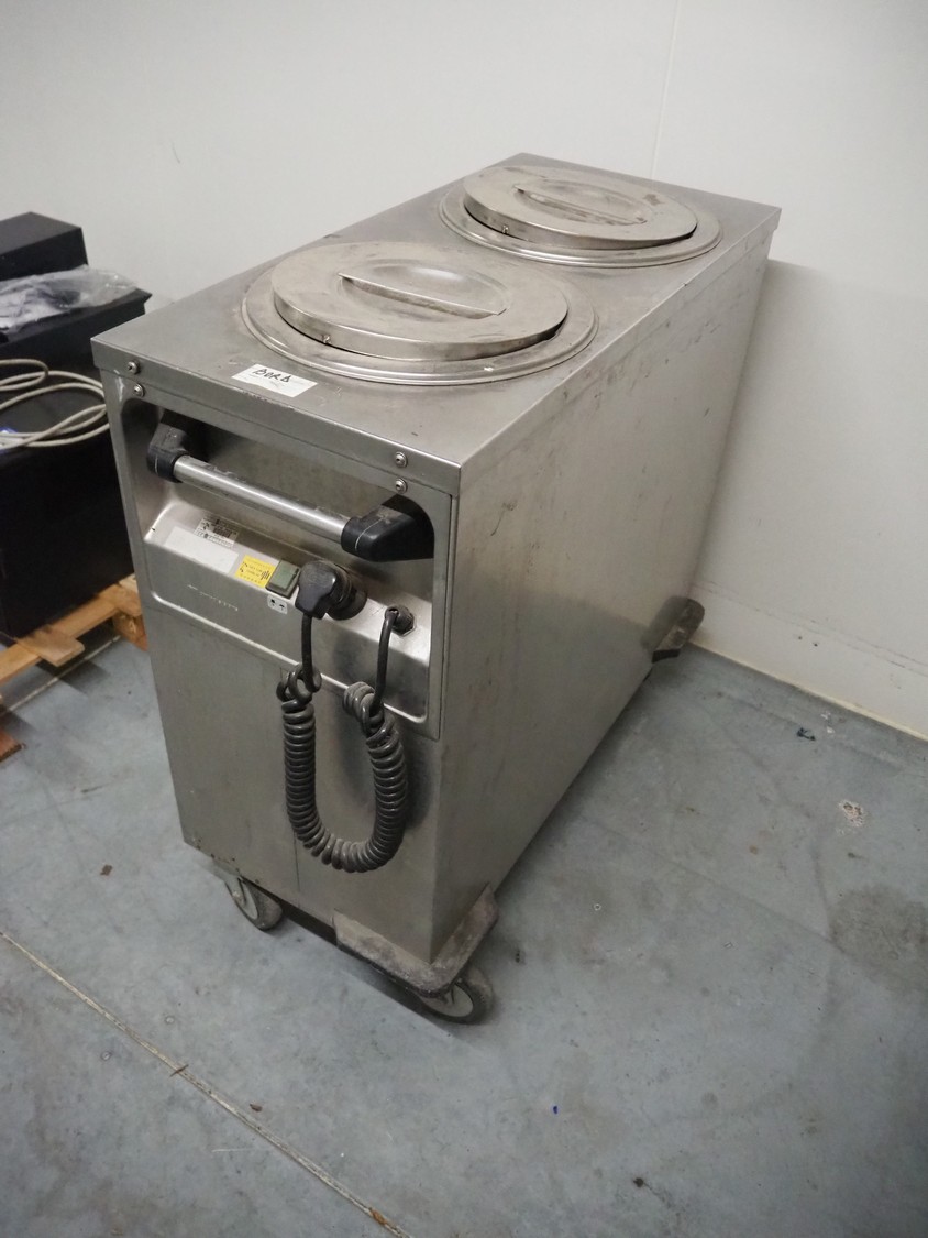 Rieber mobile plate warmer and dispenser, plate diameter: 300 mm, total dimensions: 900 mm x 450 mm x 920 mm.