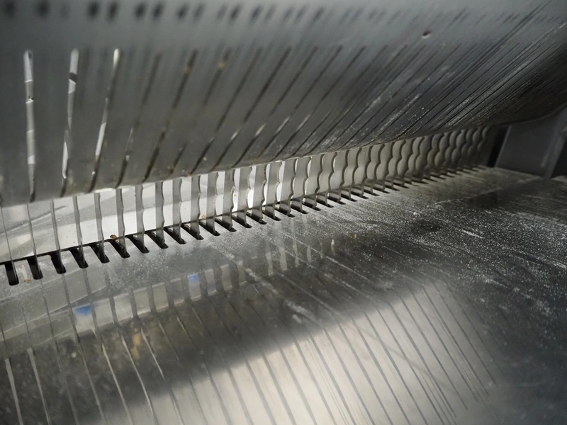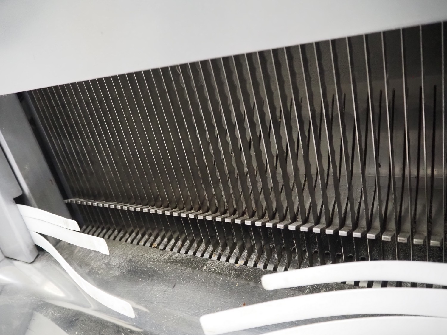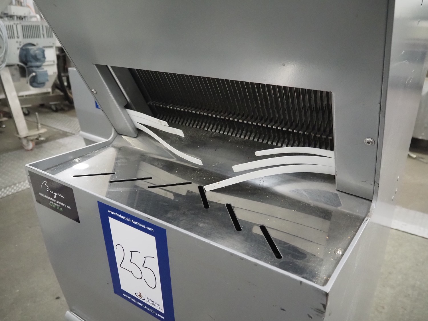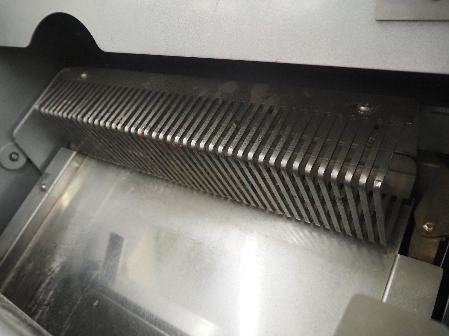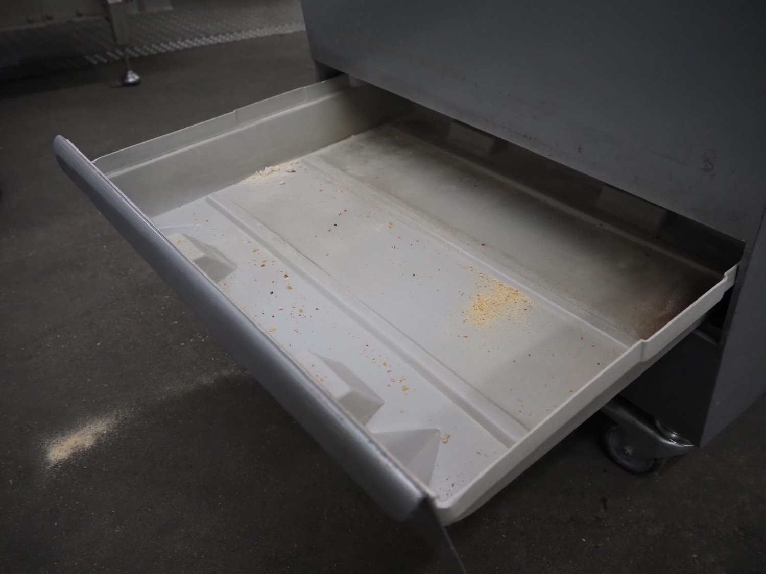 Jac mobile bread slicer, model: SLD 450/10, machine number: 11/0154/01, 400 V, 3 Ph, 50 Hz, 1.8 A, 0.49 kW, weight: 180 kg, working width: 440 mm, 41 knifes, distance between knifes: 11 mm, total dimensions: 700 mm x 600 mm x 1300 mm.